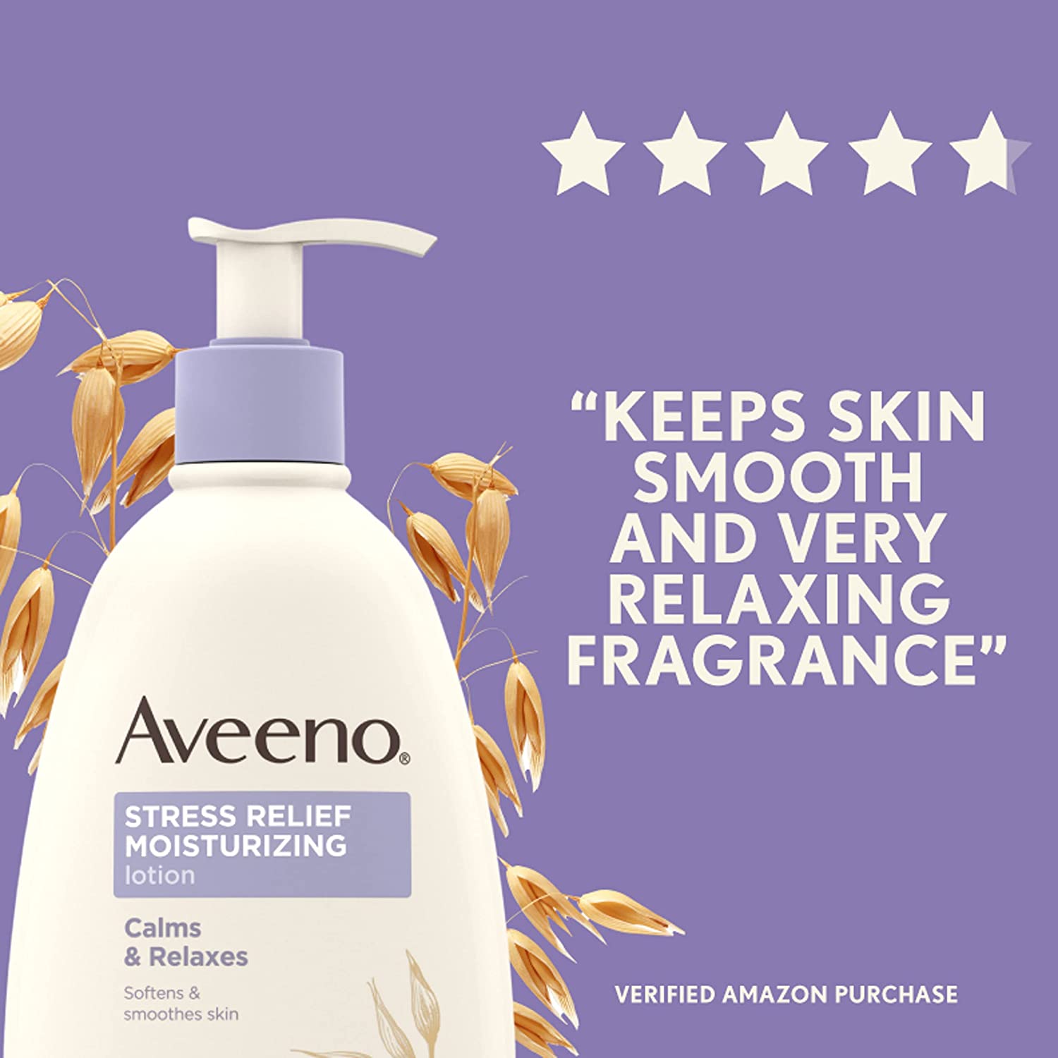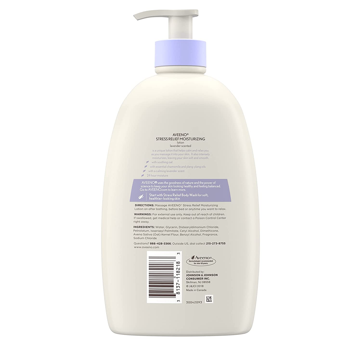 Aveeno Stress Relief Moisturizing Lotion helps calm and relax you while moisturizing for a full 24 hours to leave skin soft and smooth. Using the goodness of nature and the power of science, this soothing body lotion is made with natural oatmeal and intensely hydrates skin, leaving it feeling soft and smooth. It also combines the calming scent of lavender, and chamomile and ylang-ylang essential oils that help relieve stress as you massage it into your skin. This lavender body lotion has a nourishing non-greasy formula that absorbs quickly for lasting moisture throughout the day and is from Aveeno a dermatologist recommended brand. Good for Dry and Sensitive skin.