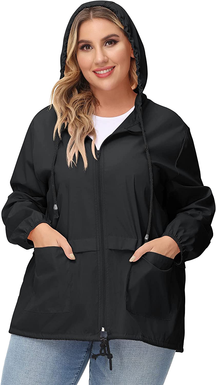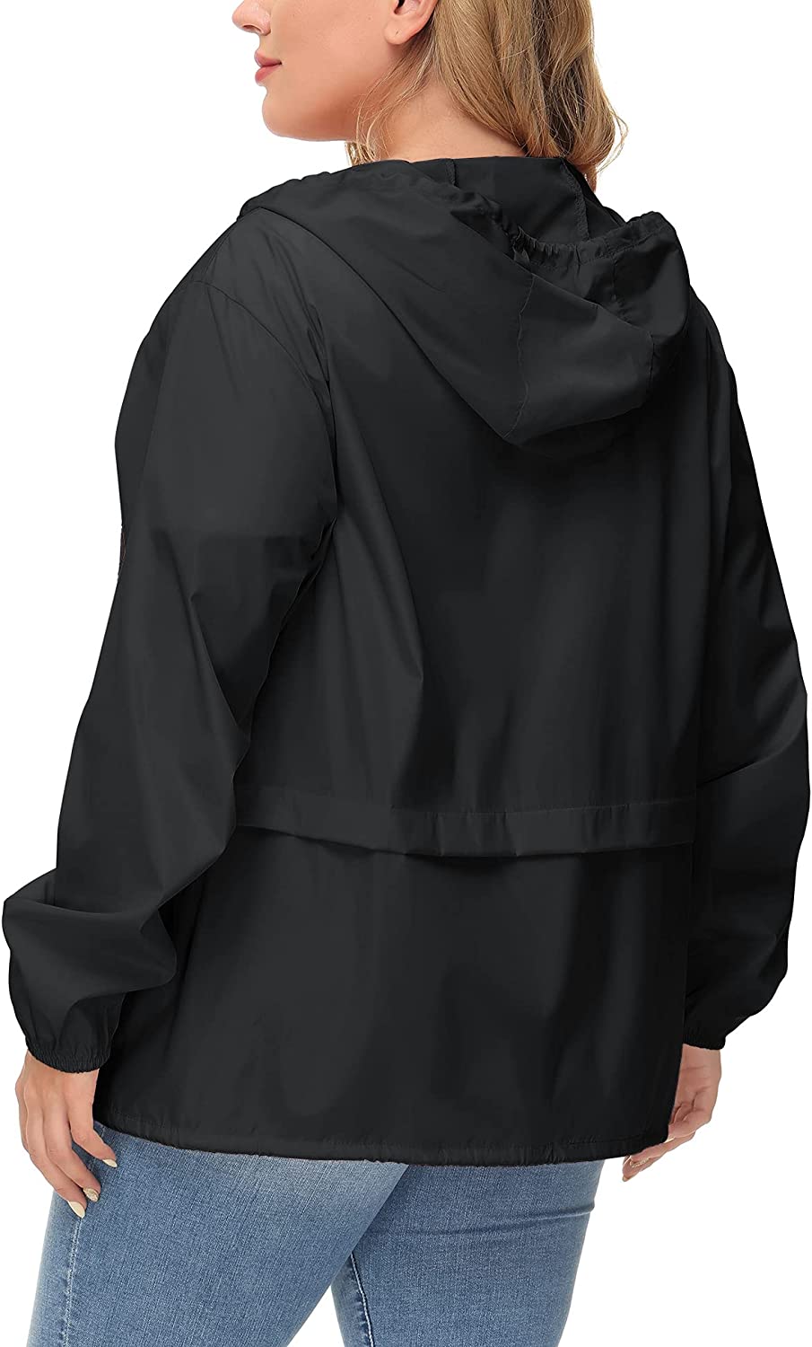 Avoogue Plus Size Raincoat Women Waterproof Rain Jacket Packable Outdoor Hooded Windbreaker