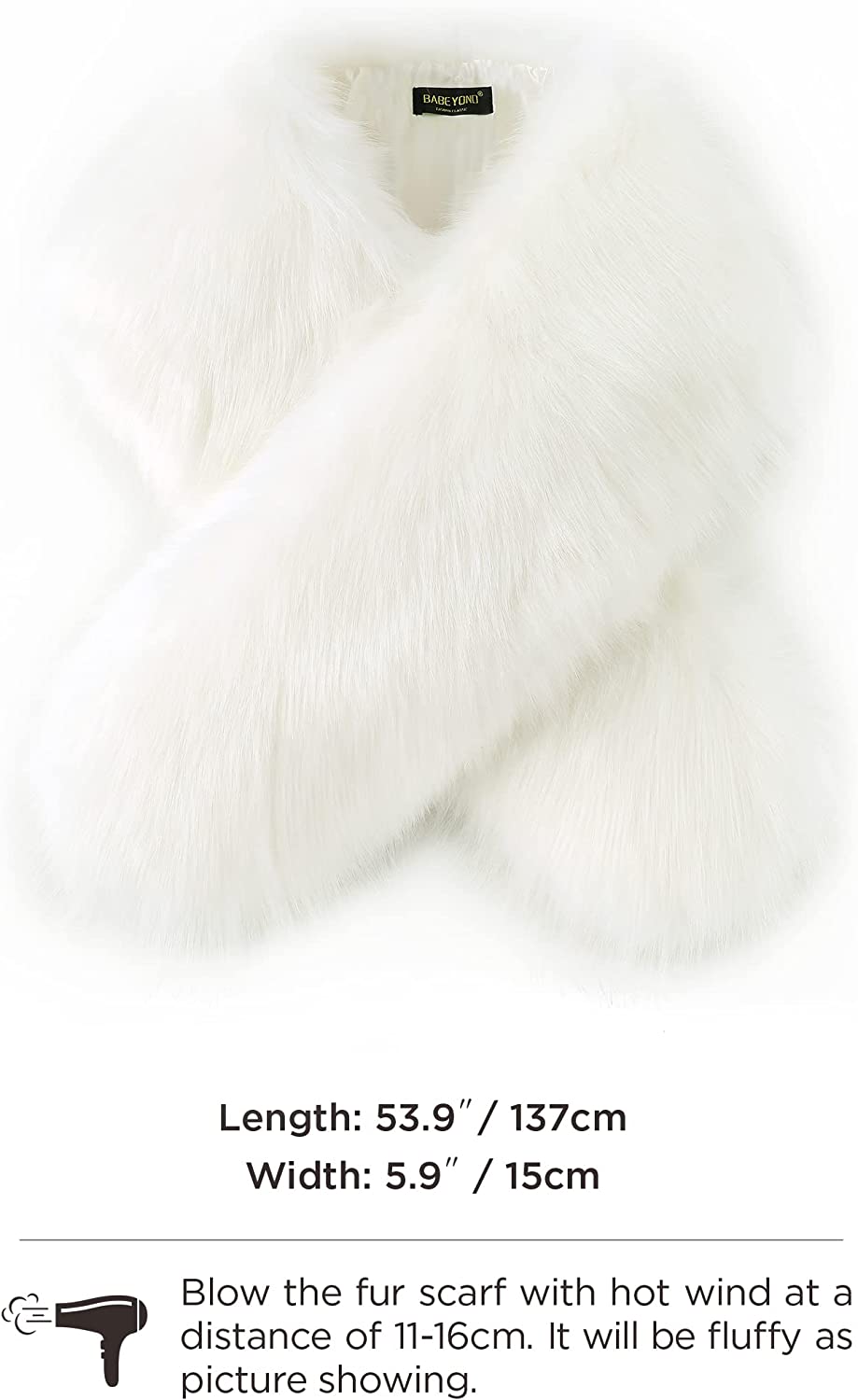 BABEYOND Women's Faux Fur Shawl Party Faux Fur Collar Fur Wraps for Winter Bridal Wedding Cover Up
