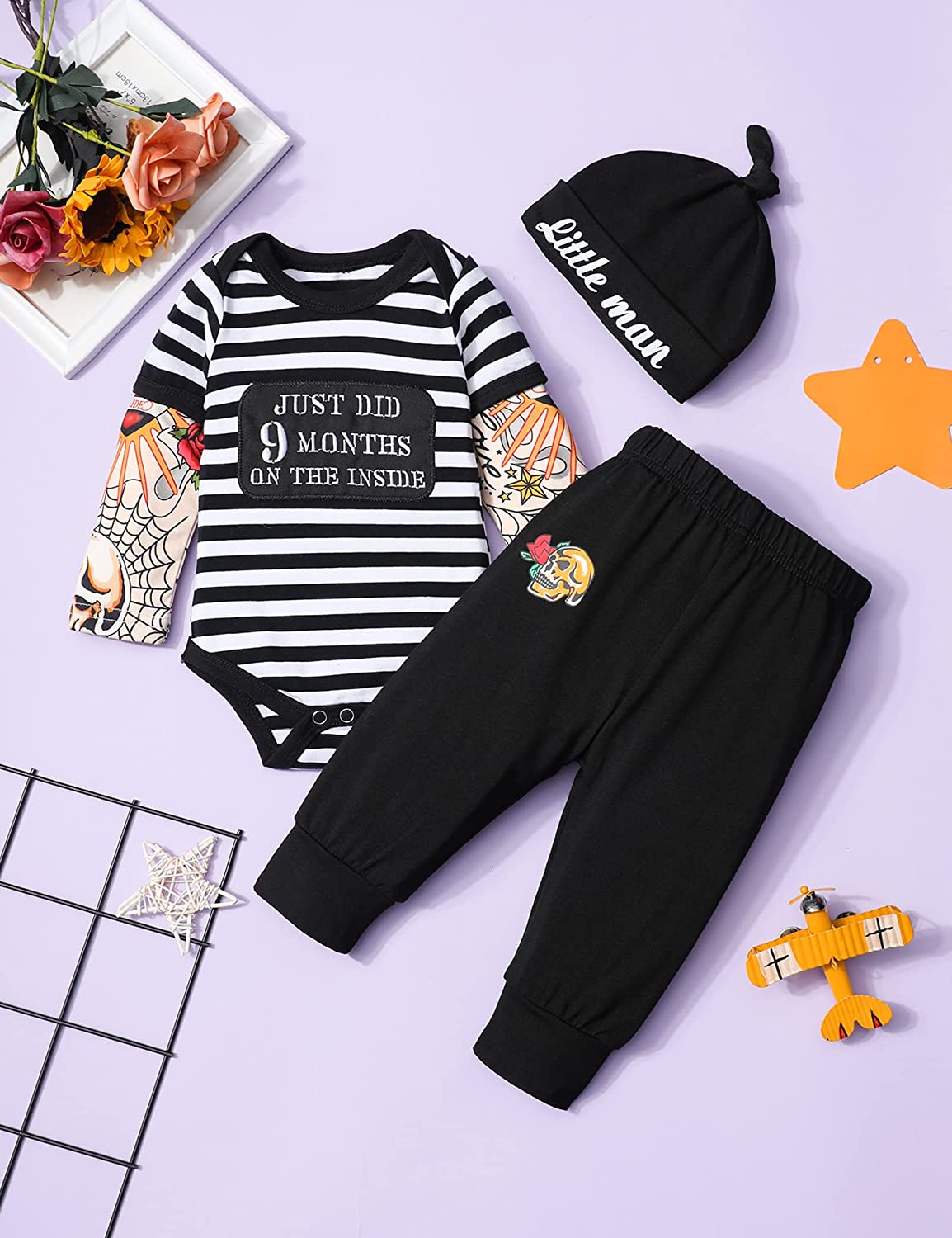 Baby Boy Clothes Letter Print Long Sleeve Romper+Camouflage Pants+Hat 3PCS Outfits Set