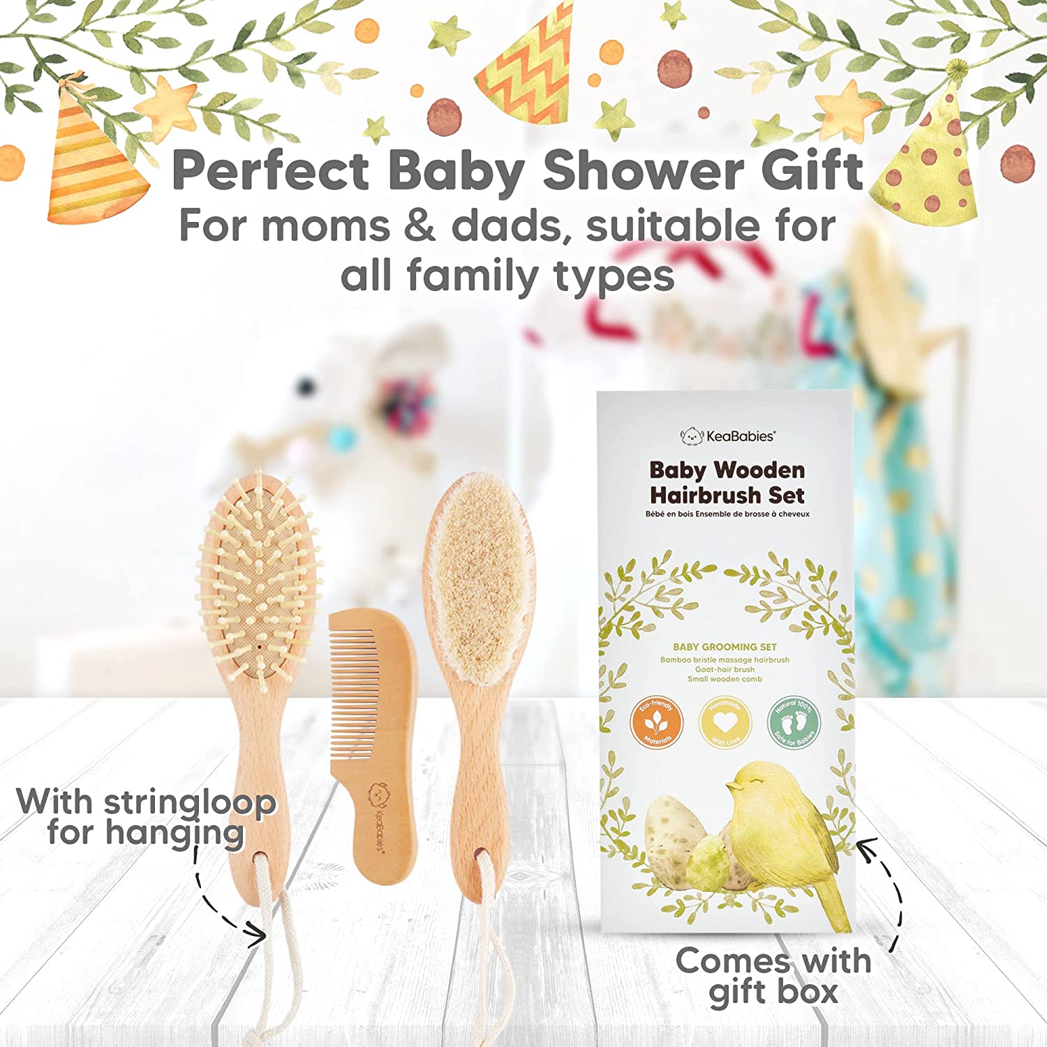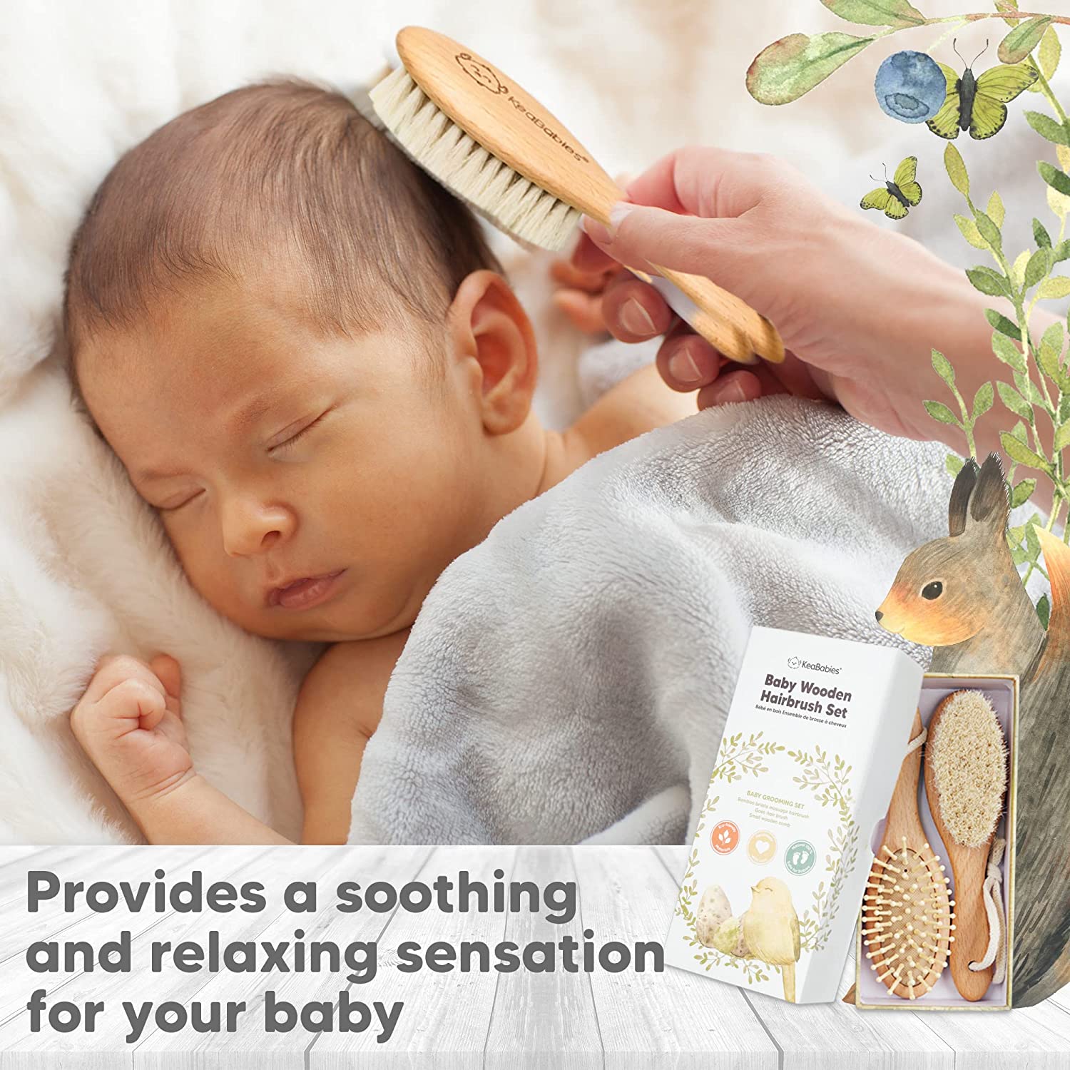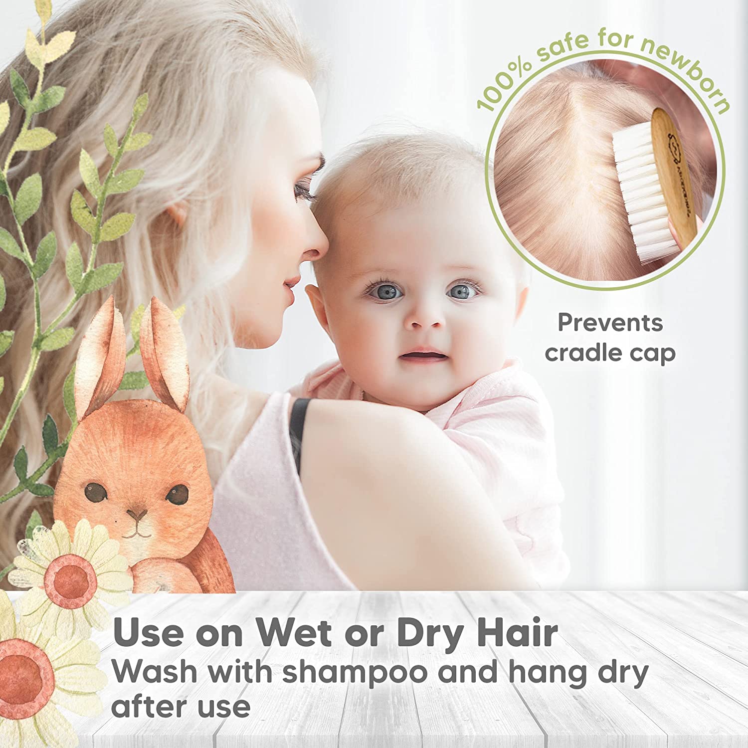 Baby Hair Brush - Natural Wooden Cradle Cap Brush with Soft Goat Bristle - Baby Brush Set for Newborns - Toddler Comb - Perfect Scalp Grooming Product for Infant, Toddler, Kids (Oval, Walnut)