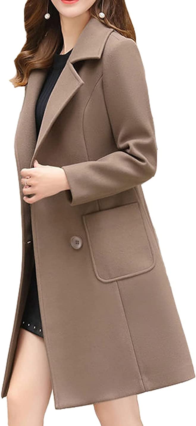 Bankeng Women Winter Wool Blend Camel Mid-Long Coat Notch Double-Breasted Lapel Jacket Outwear