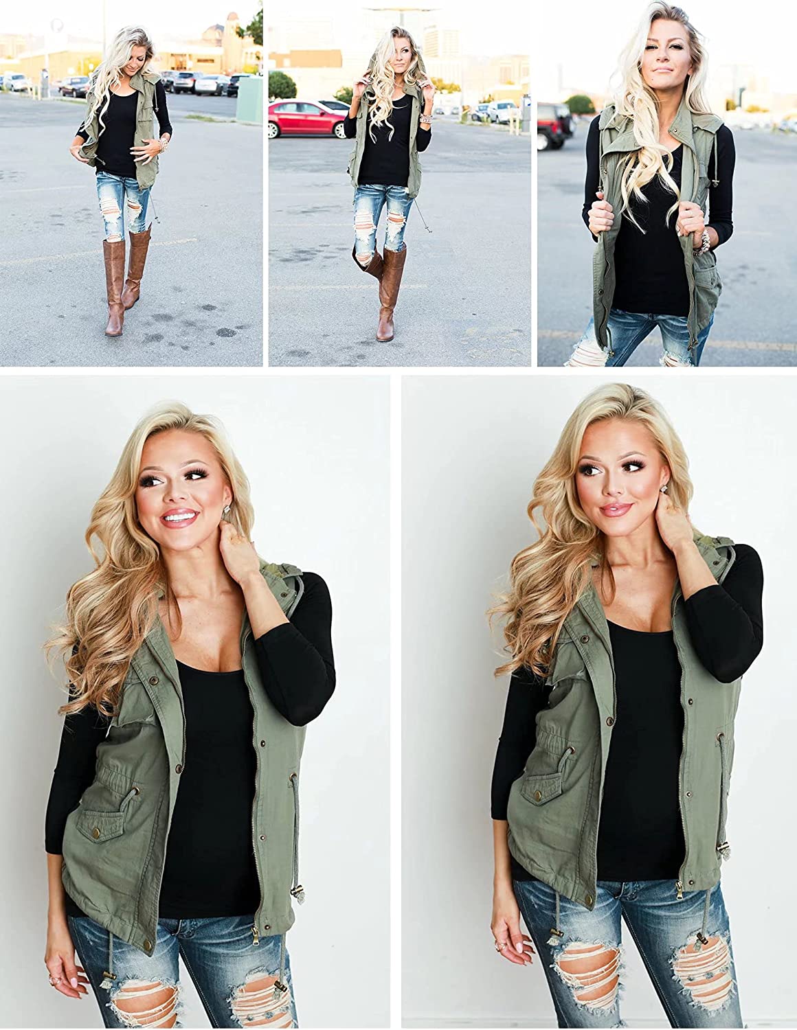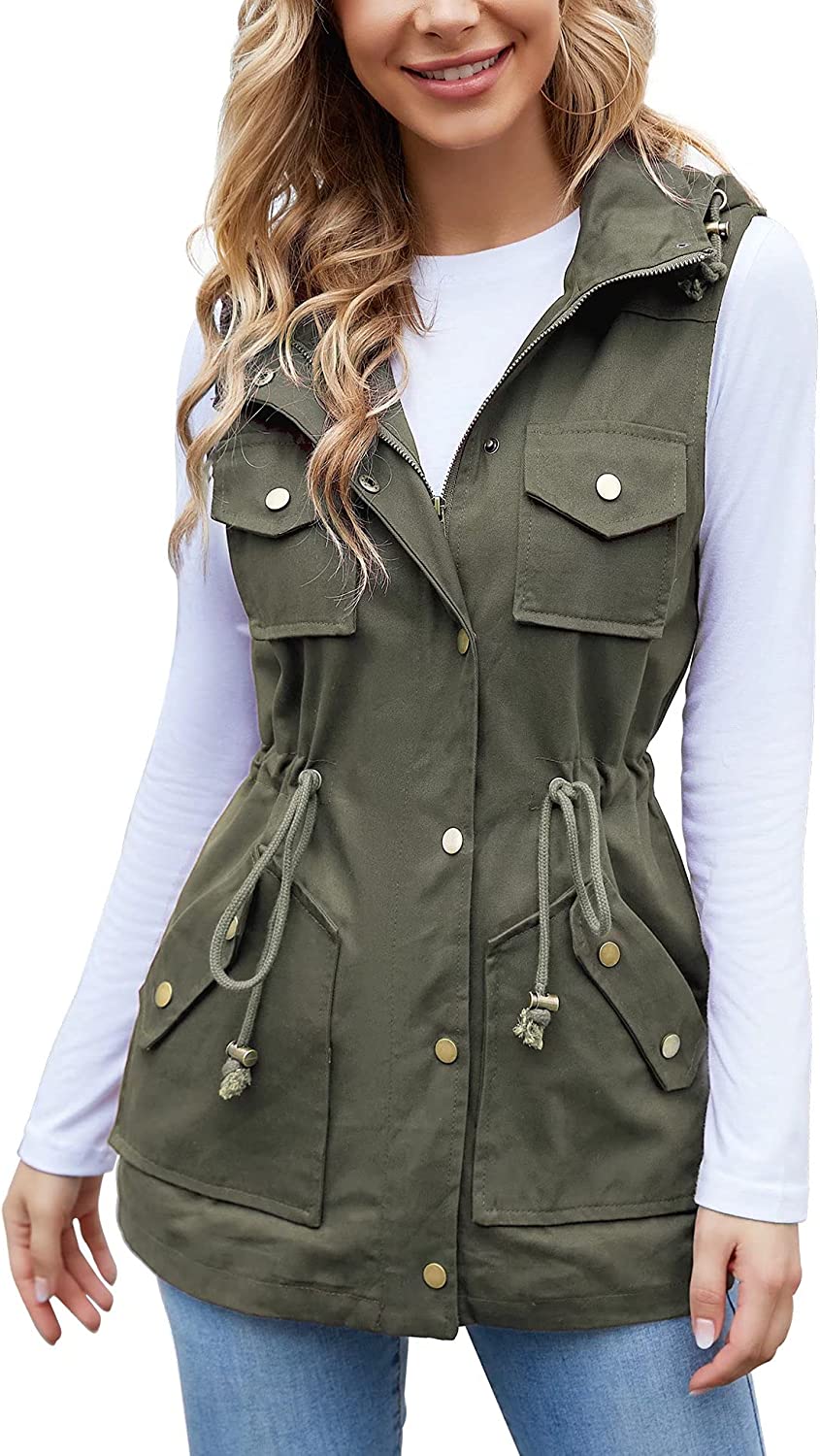 BBX Lephsnt Womens Utility Vest Drawstring Waist Military Sleeveless Jacket
