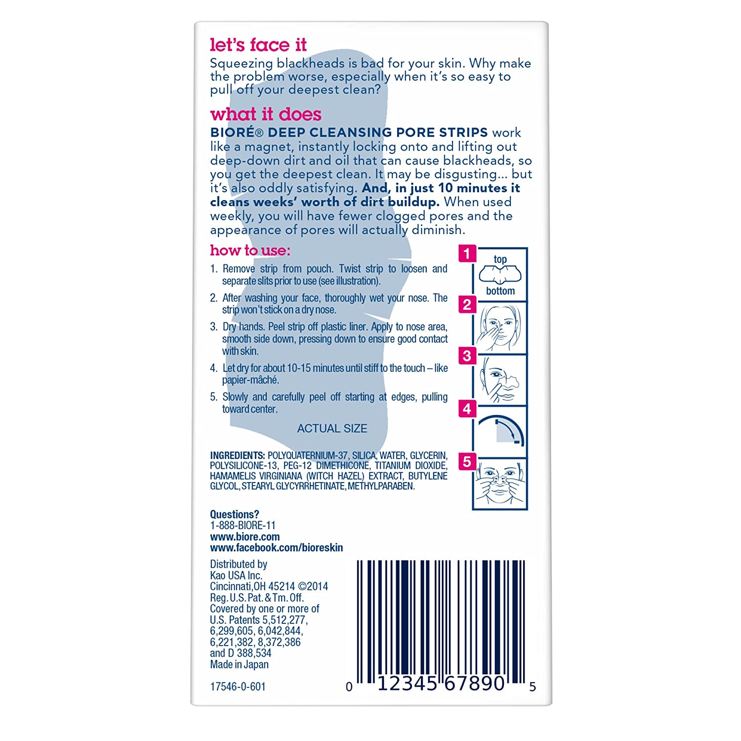 Remove blackheads and shrink the size of pores with Bioré Blackhead Reducing Deep Cleansing Pore Strip. These deep cleansing nose strips target blackheads and unclog pores for healthy looking skin. Convenient and easy to use, these Pore Strips can be used 1x per week for the deepest clean. Unlike other wannabe ‘pore strips’, ONLY Bioré Deep Cleansing Pore Strips use patented C-bond technology to bind to blackheads and impurities, NOT to skin. These strips by Kao USA are super magnetic to safely and effectively remove dirt, oil, and even stubborn blackheads. Bioré Deep Cleansing Pore Strips leave skin feeling cleaner with visibly smaller pores after continuous use. A dermatologist-tested way to remove blackheads and purify pores. Satisfaction Guaranteed. Limitations may apply.