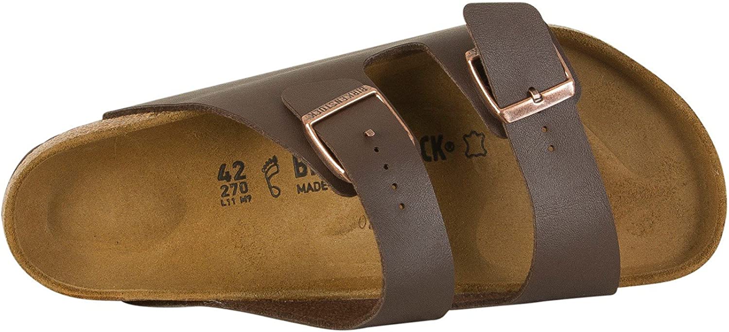 Arizona SFB Stone Birkibuc&trade Leather Sandals This is the real deal. Cork, leather, a buckle or two: these are the simple ideas that have made feet happy for over two hundred years, and that's the original Birkenstock. These shoes are made in Germany since 1774. No smoke, no mirrors, and no gizmos are needed. You walk, the shoe molds to your foot. The shape of the Original Birkenstock Footbed enables body weight to be distributed evenly over the whole foot, providing it with optimal support.