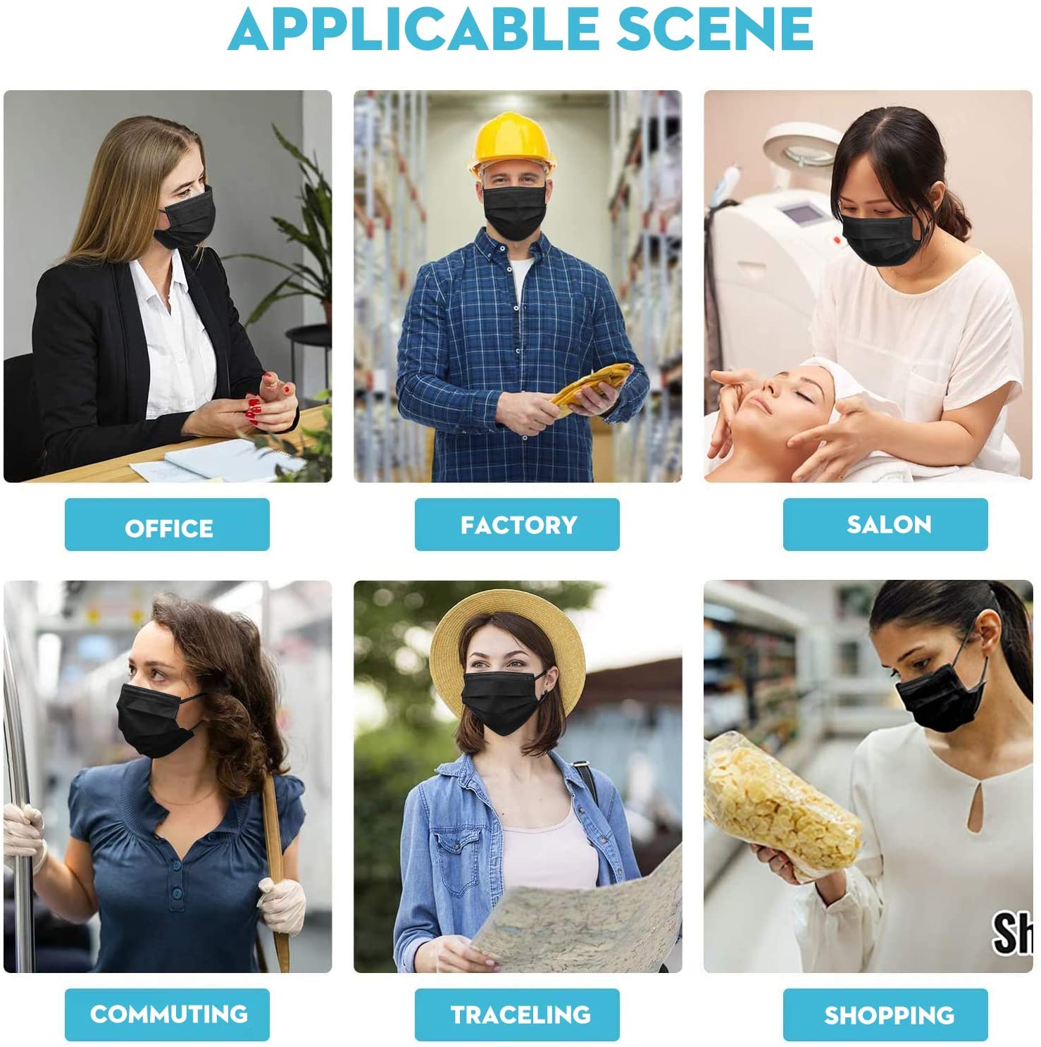 Black Disposable Face Masks 4 Layers Protection 50Pcs, Breathable Dust Mask Mouth Covers for Adult