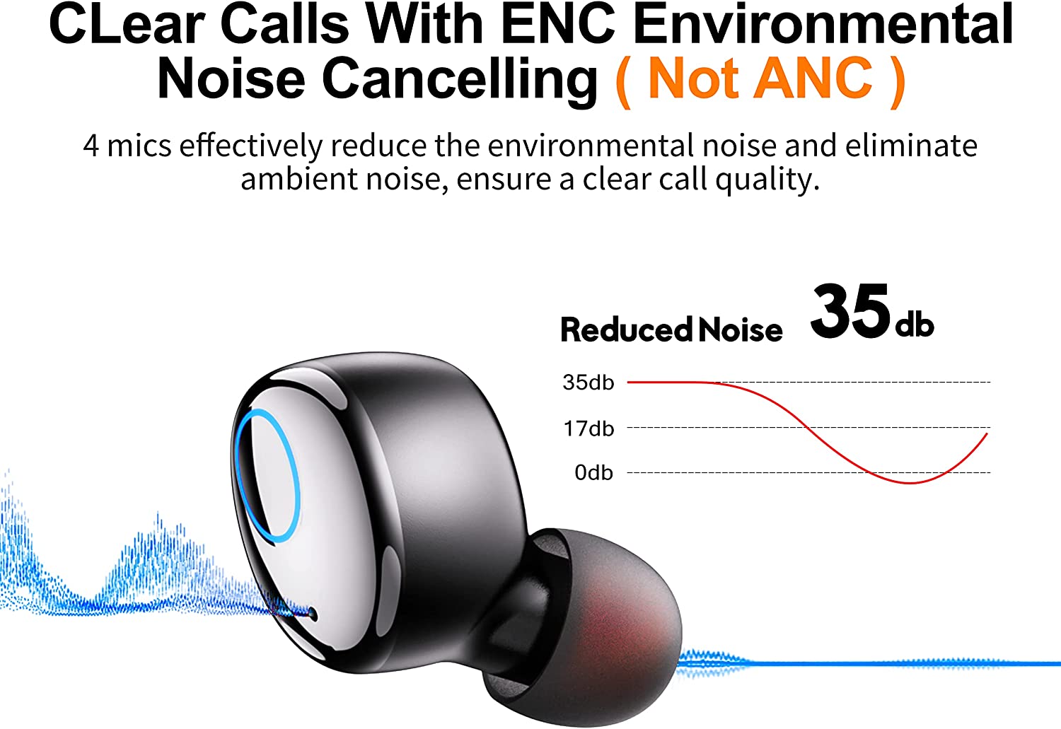 Bluetooth 5.2 Wireless Earbuds,Kurdene S8 Deep Bass Sound 38H Playtime IPX8 Waterproof Earphones Call Clear with Microphone in-Ear Stereo Headphones Comfortable for iPhone, Android