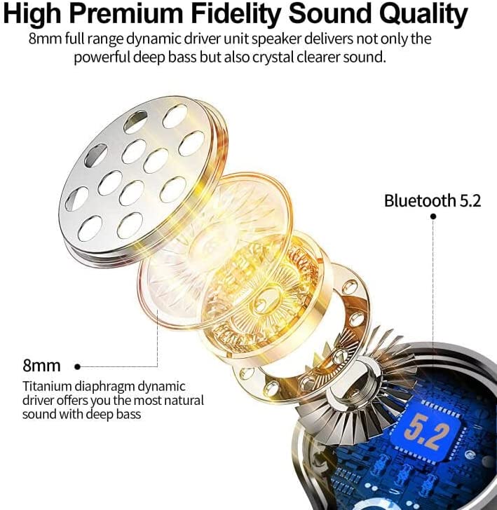 Bluetooth 5.2 Wireless Earbuds,Kurdene S8 Deep Bass Sound 38H Playtime IPX8 Waterproof Earphones Call Clear with Microphone in-Ear Stereo Headphones Comfortable for iPhone, Android