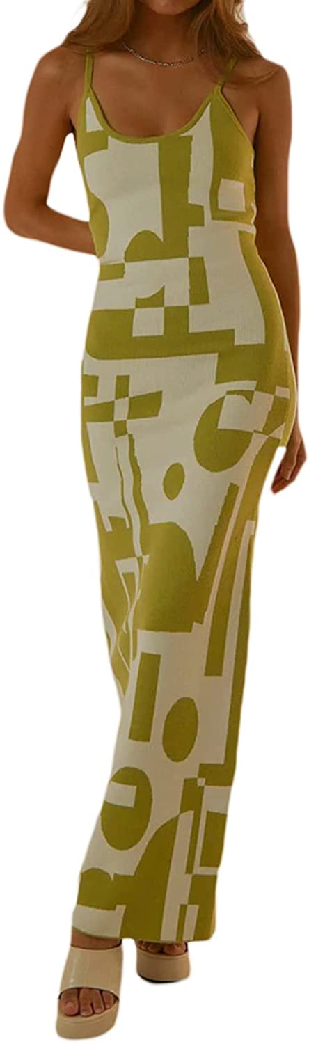Bodycon Dresses for Women Summer Knit Hollow Out Sexy Night Out  Midi Maxi Dress Sleeveless Long Cut Out Dress