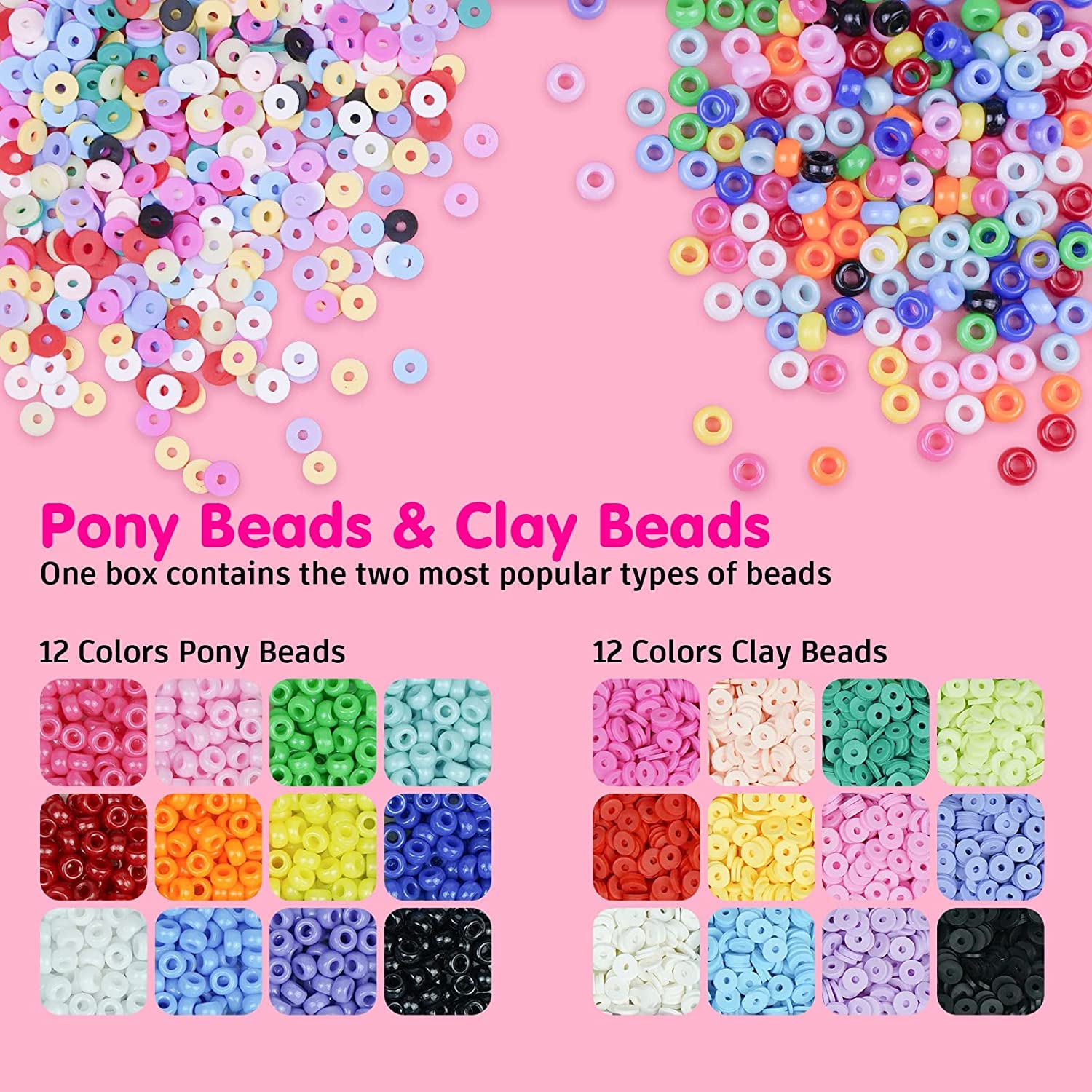 Bracelet Making Kit,Velavior Bead Kit Including 24 Colors 2400pcs Clay Beads,600pcs Pony Beads and 200pcs Letter Beads for Bracelets Jewelry Making with Charm Pendants and Elastic Strings
