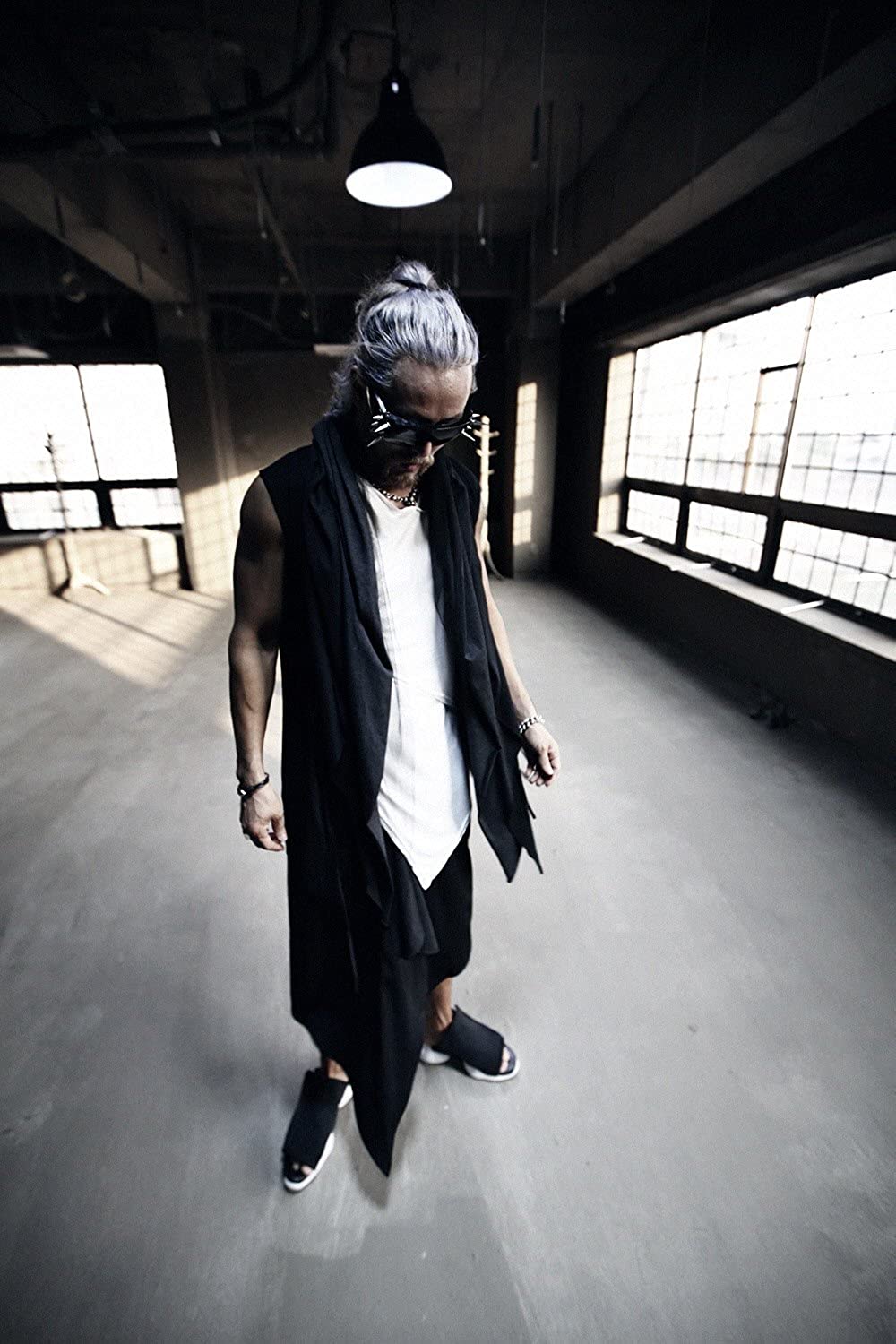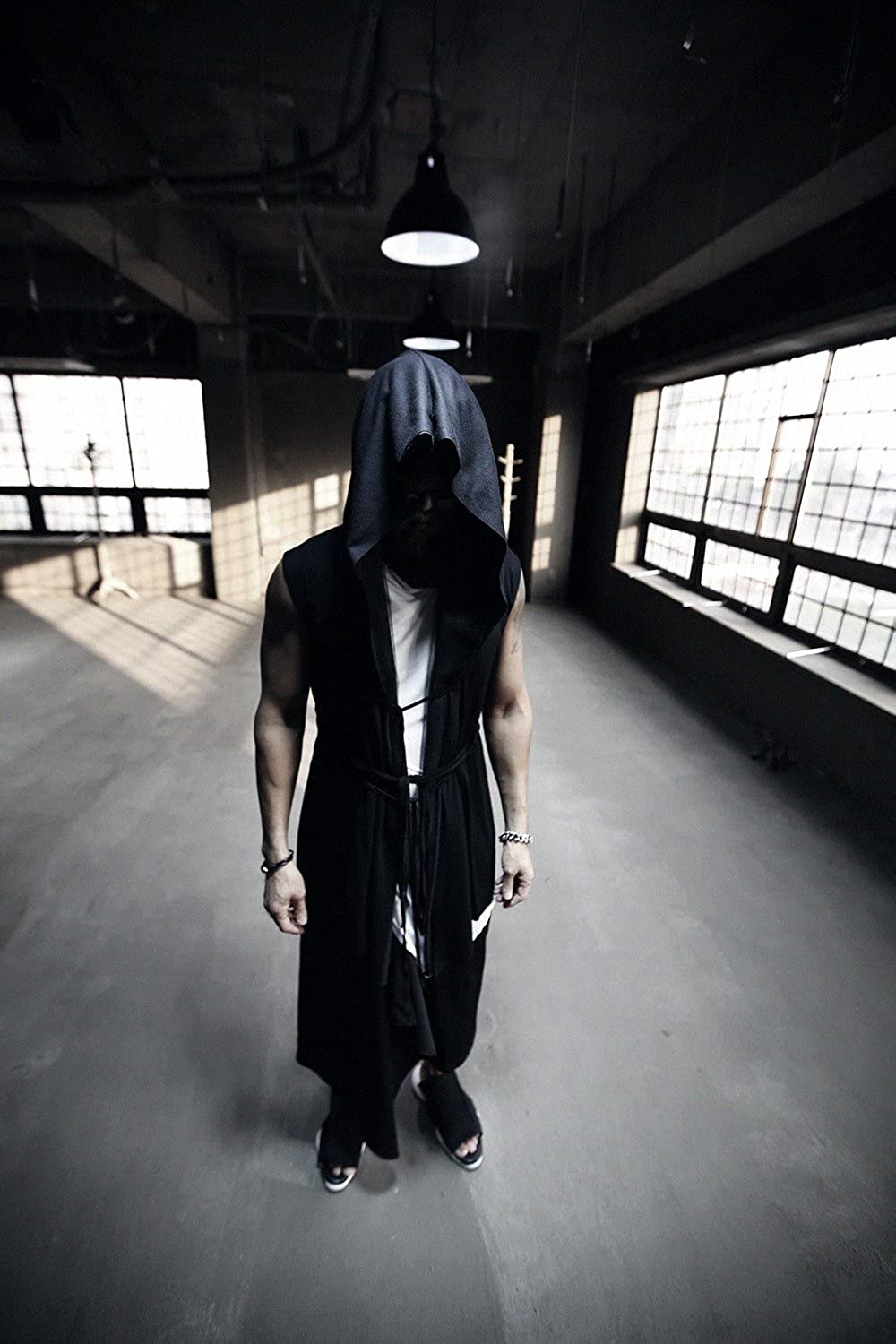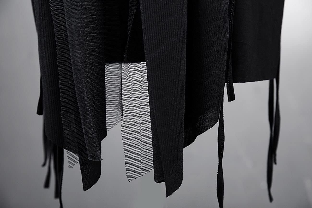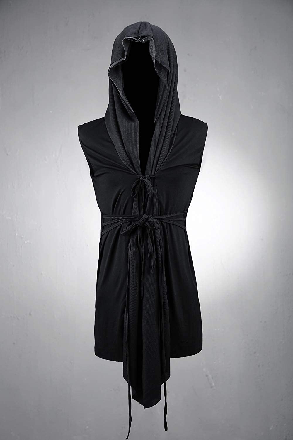 ByTheR Cloak with Hood Mens Sleeveless Mesh Layered Cut Off Open Vest Dark Goth Cardigan Black