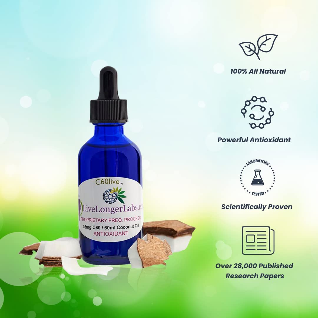 C60live - Carbon 60 (Fullerene) Coconut Oil Supplement - for Longevity, Heart Health, & Overall Wellness - All Natural & Organic - C60 - Extra Virgin Coconut Oil - 2oz Dropper