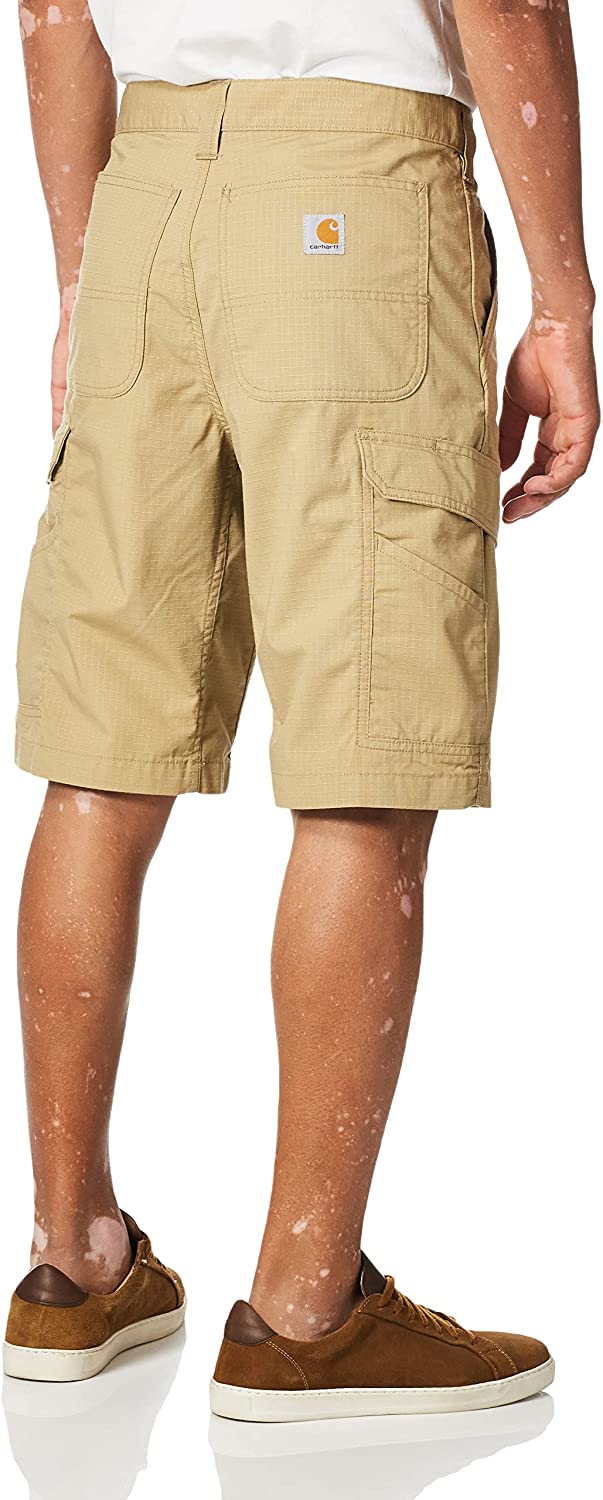These men's lightweight Carhartt shorts give you easy movement on the job with durable stretch ripstop. They also wick sweat and fight odor as you work. The relaxed cut has a comfortable fit through the seat and thigh, and multiple cargo and utility pockets let you stash your tools. 7-ounce, 92% nylon / 8% spandex stretch ripstop. Built to move with Rugged Flex® stretch technology #Built with Force technology to wick sweat, dry fast, and fight odors. FastDry® technology keeps you cool for all day comfort. Relaxed Fit: Comfortable fit through the seat and thigh with more room to move #Strong sewn-on-seam belt loops. Comfortable gusseted crotch for more stretch between the legs. Reinforced front slash pockets. Cargo and utility pockets. Heavy-hauling reinforced back pockets. Inseam: 11"
