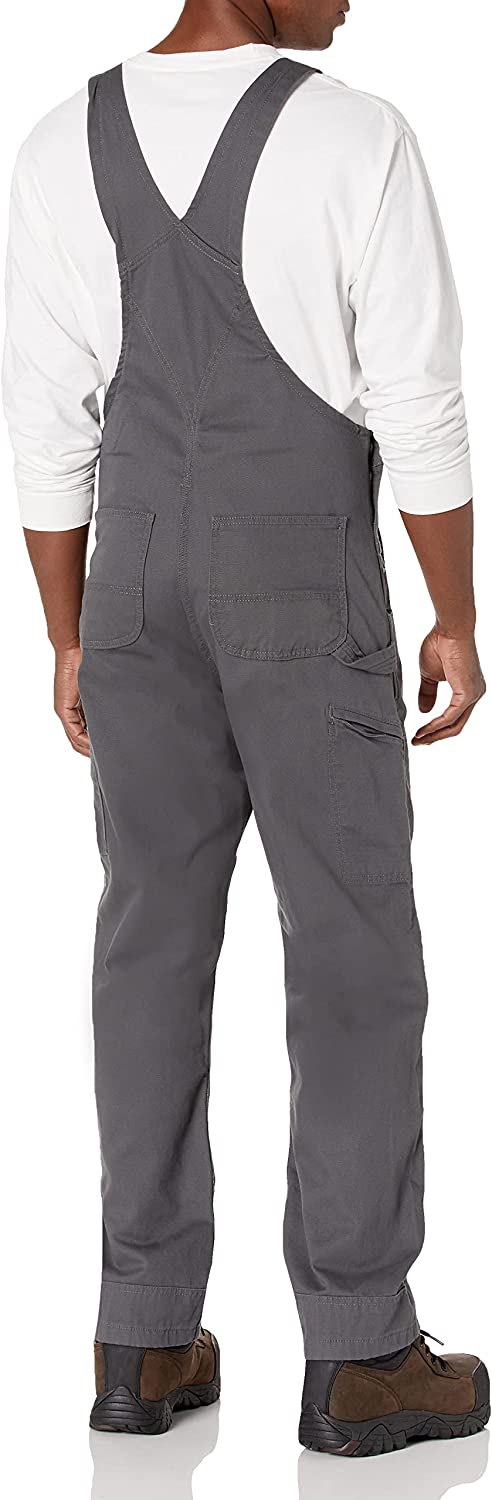 Carhartt durable stretch bib overalls. That's right, these bibs are as comfortable as that onesie you sleep in, but a heck of a lot more durable. 8-ounce, 98% cotton/2% spandex canvas • Rugged Flex durable stretch technology for ease of movement • Adjustable front-elastic suspenders • Bib pocket with zipper closure • Two additional storage pockets; one with pen stall • Zipper fly • Two large, lower-front ledge pockets • Right-leg hammer loop • Right-leg secure cellphone pocket • Long-wearing, chap-style double-front construction with cleanout bottoms that can accommodate knee pads • Two reinforced back pockets • 360 leg-bottom kick panels for durability • Triple-stitched main seams for durability • Metal rivets at vital stress points • Imported. Do not bleach. Tumble dry low.