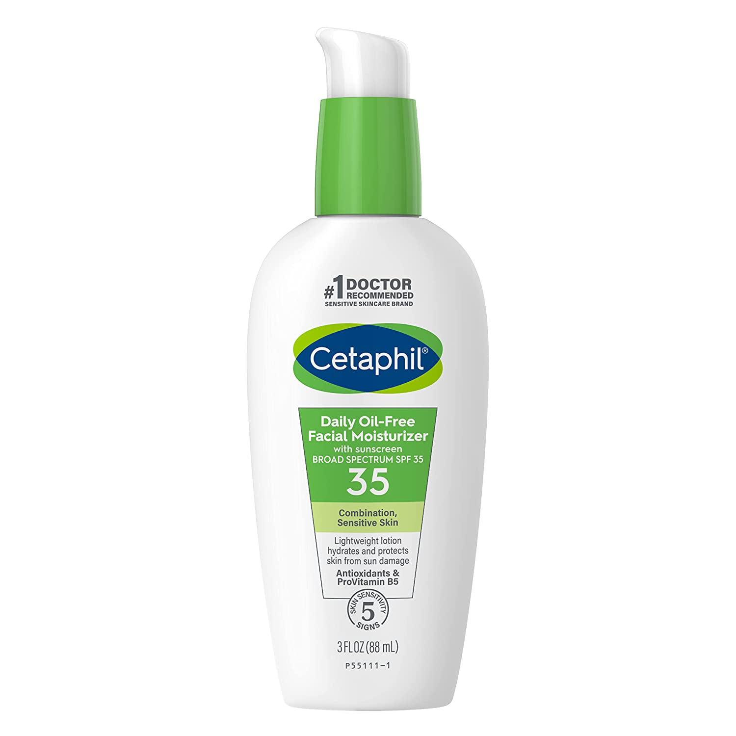 Cetaphil Daily Facial Moisturizer SPF 35 is a lightweight and fast absorbing moisturizer designed to hydrate sensitive combination skin for 24 hours. Broad spectrum SPF 35 protects against the sun's damaging UVA and UVB rays to keep skin looking young and vibrant while edelweiss flower extract nourishes to repair the skin barrier. This moisturizer contains ProVitamin B5 to soothe sensitive skin while a unique blend of antioxidants prevent damage from surface free radicals. The lightweight, non-greasy formula absorbs quickly, providing instant and long lasting hydration without clogging pores. Fragrance free, oil free and paraben free, this gentle yet effective face lotion with sunscreen is clinically tested for even the most sensitive skin.