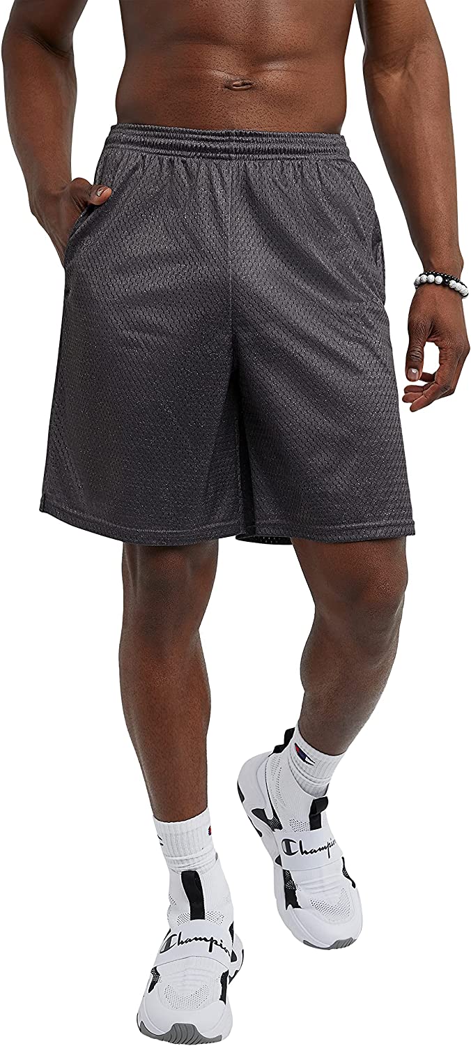 For the light, airy comfort you crave for sports, training, or relaxing, look to Champion®'s long mesh basketball shorts from the company that invented the mesh athletic short. The silhouette is classic, with airy mesh and a smooth tricot lining that feels amazing against your skin. Designed for comfort and convenience, these light, breathable mesh gym shorts have an elasticized waistband with an inside drawstring to adjust for a perfect fit. The loose legs with side vents at the hem are designed for ease of movement, with convenient side pockets for essentials. The longer length with a 9" inseam hits just at the knee. Go with the original mesh basketball shorts from Champion®.