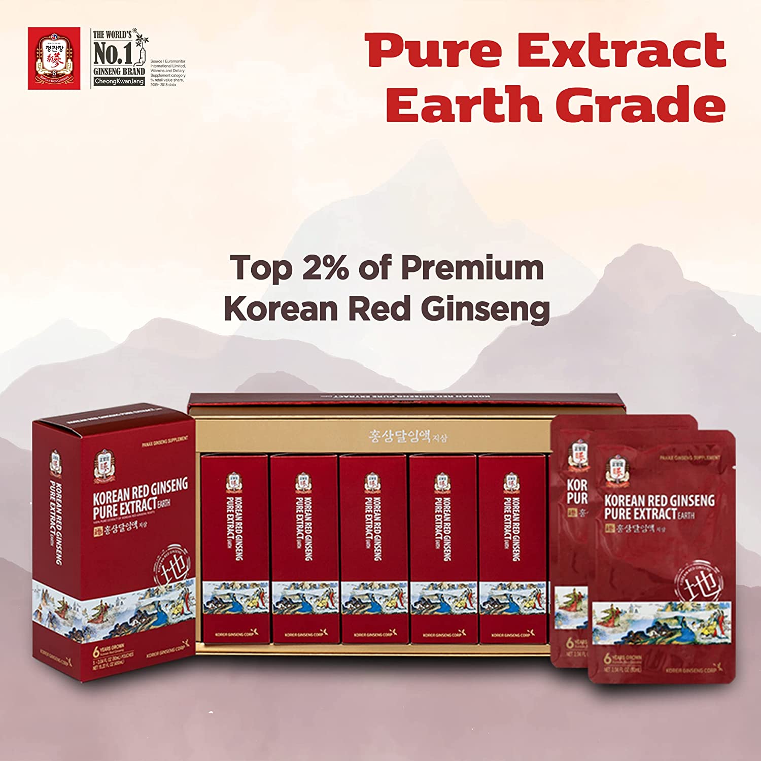 CheongKwanJang [Korean Red Ginseng Pure Extract Earth 100% 6-Year-Old Asian Panax Ginseng Roots with Top 2% Premium Grade Ginseng, Boost Immune System, Energy - 30 Pouch