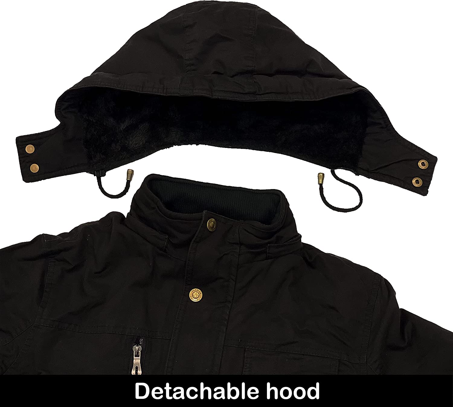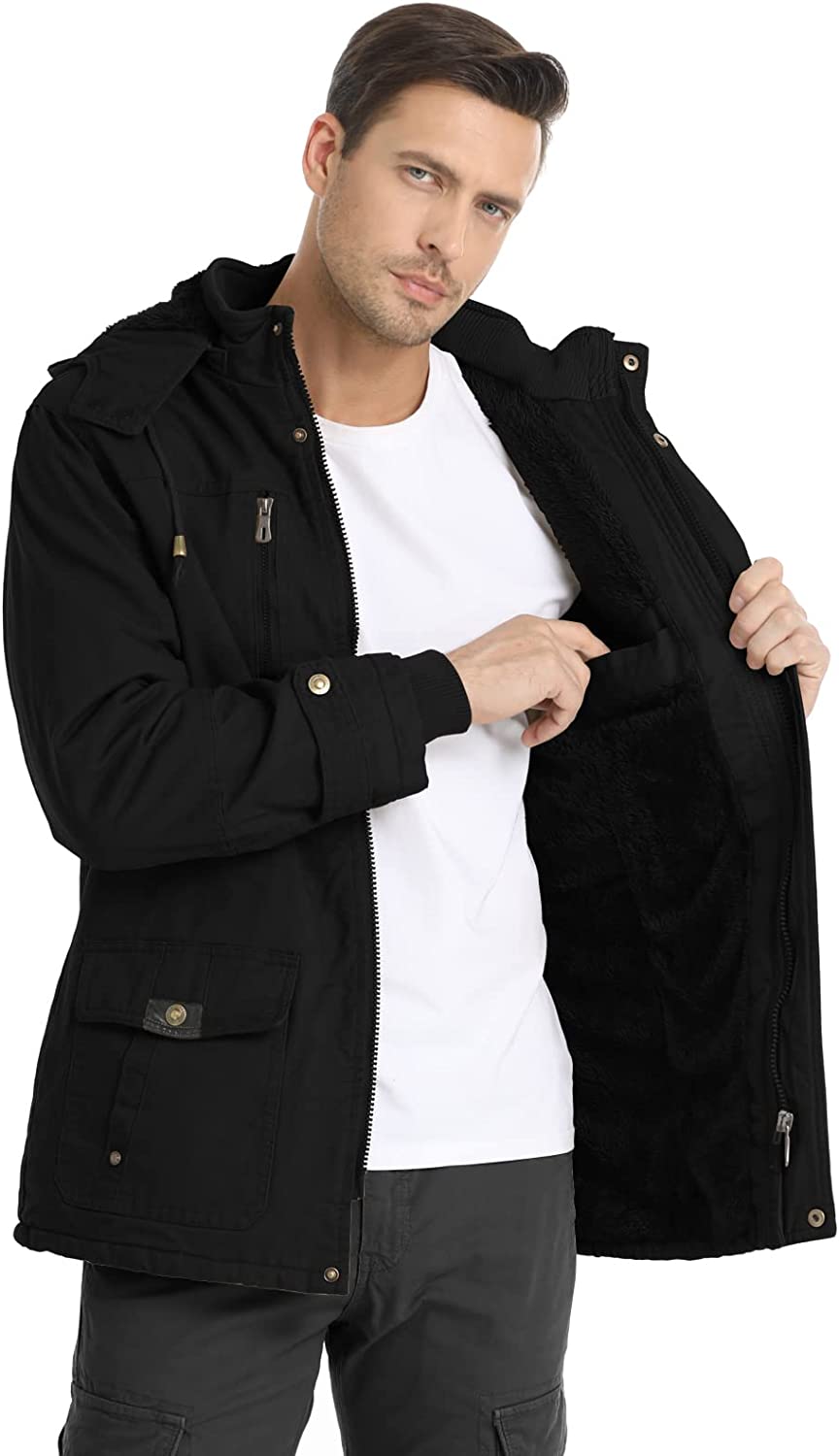 CHEXPEL Men's Thick Winter Jackets with Hood Fleece Lining Cotton Military Jackets Work Jackets with Cargo Pockets