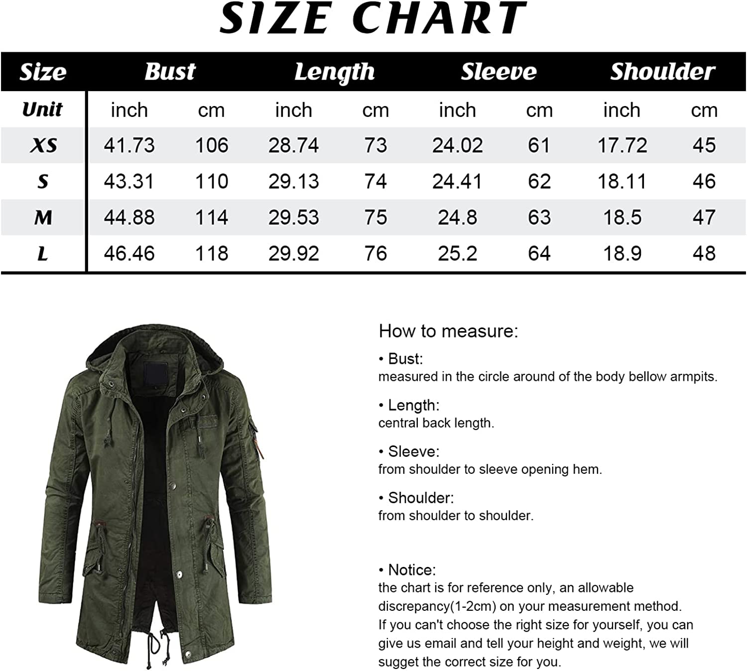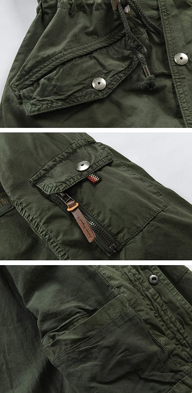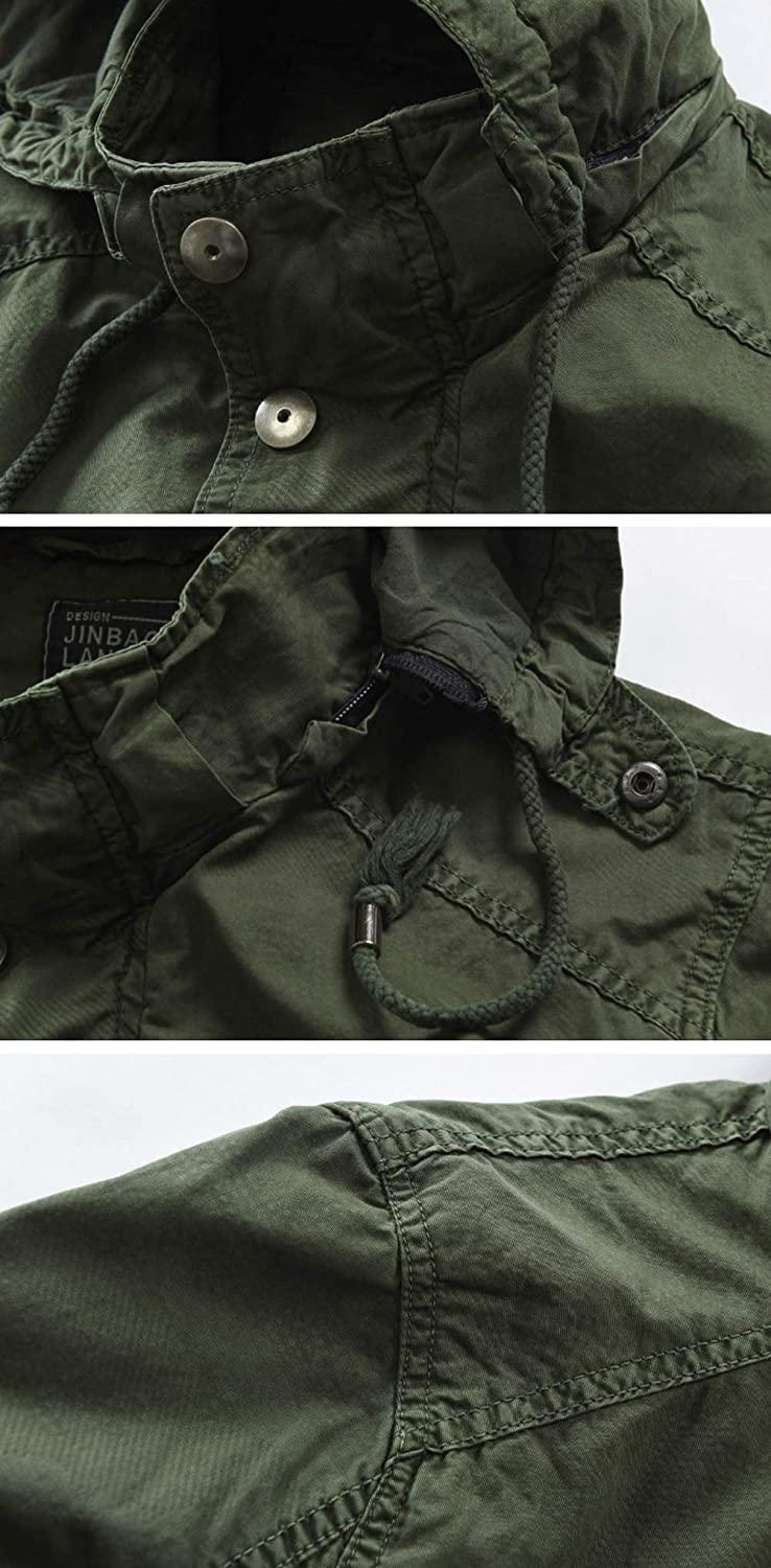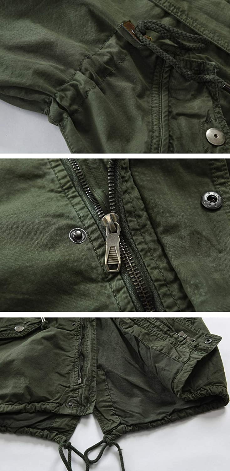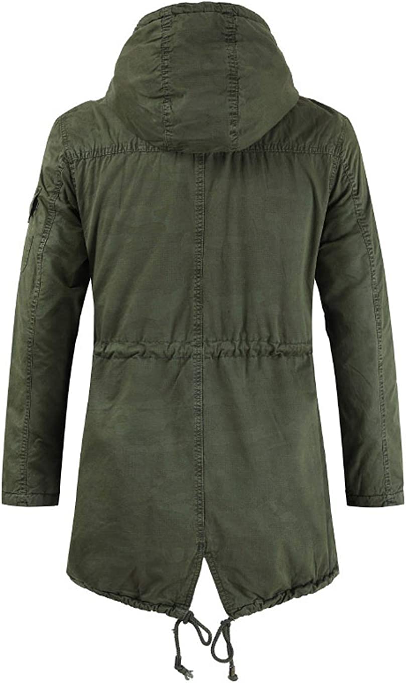 chouyatou Men's Spring Military Full-Zip Removable Hooded Cotton Mid-Long Parka Jacket Coat