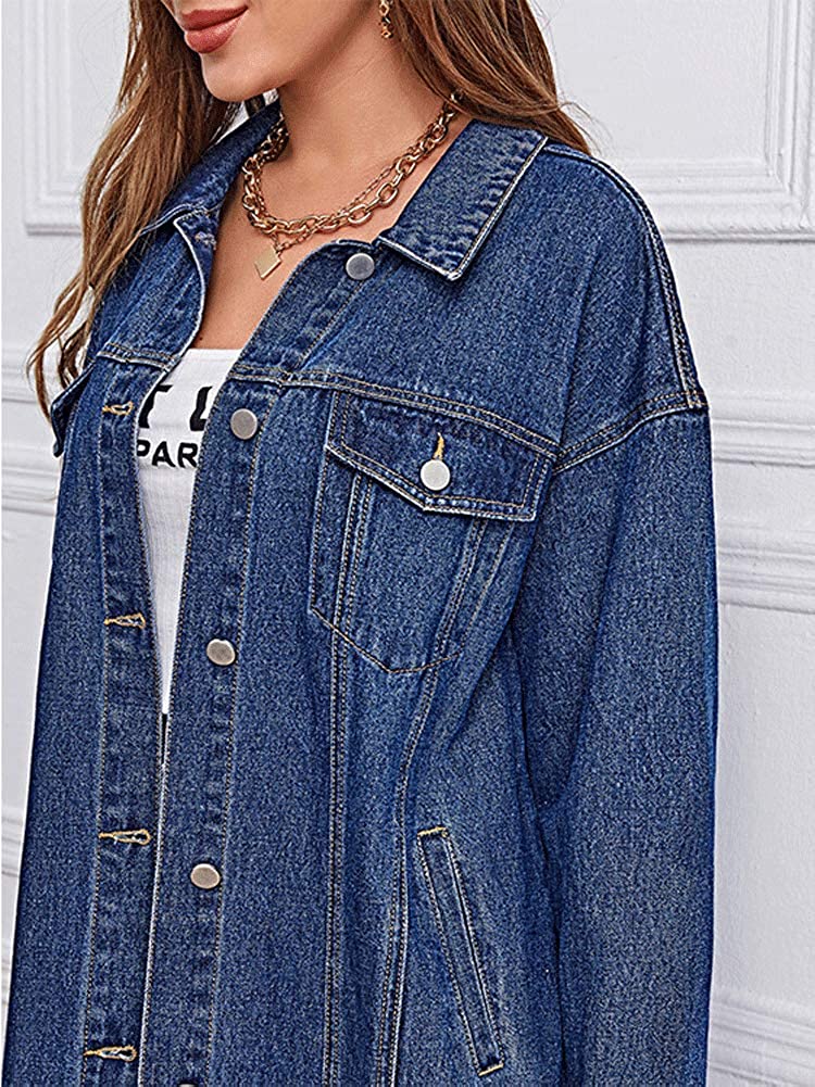 chouyatou Women's Fashion Spring Button Down Midi Long Denim Jean Jacket Trench Coat