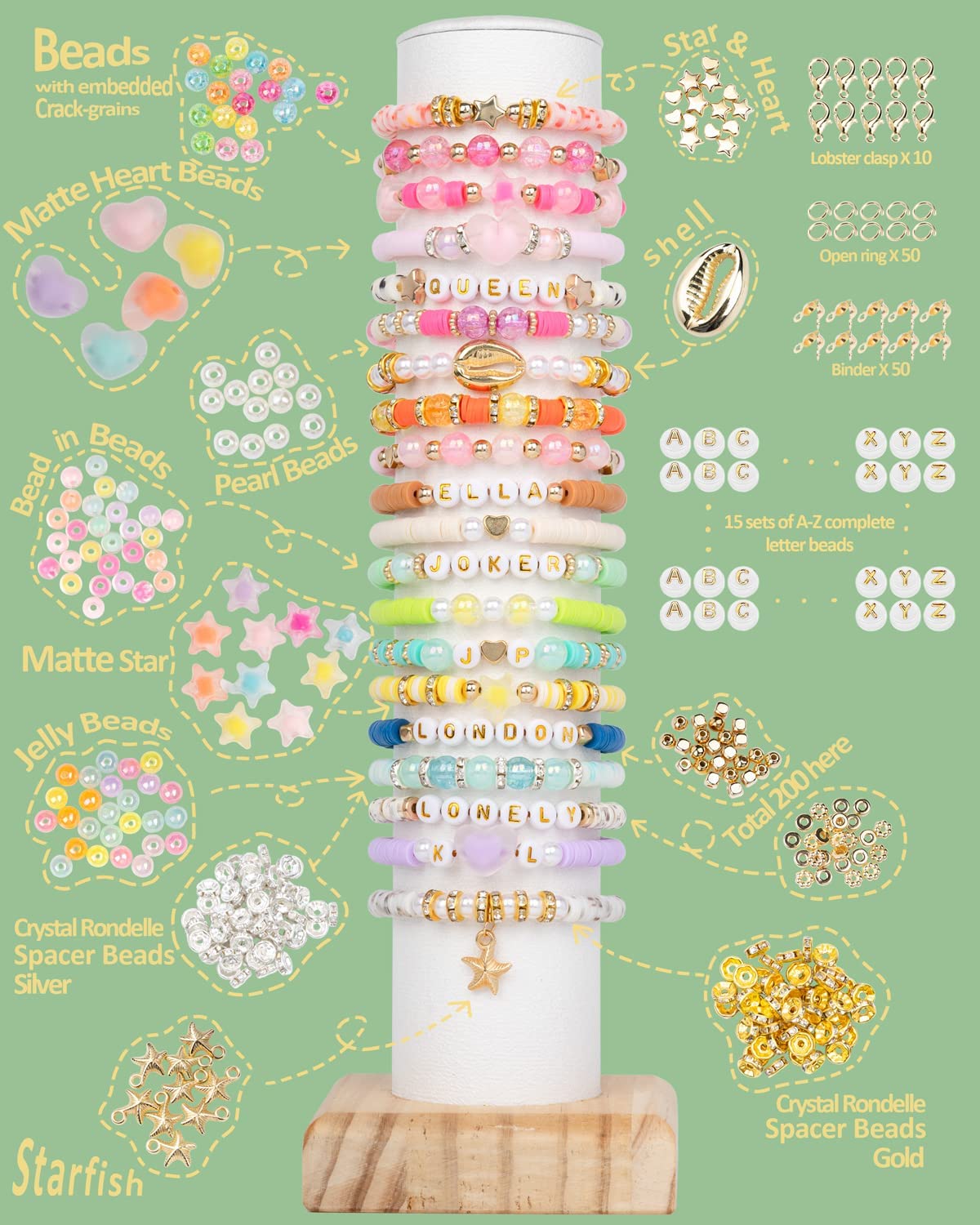 Clay Beads 2 Boxes Bracelet Making Kit - 24 Colors Polymer Clay Beads for Bracelets Making - Jewelry Making kit with Gift Pack - Bracelet Making Kit for Girls - Heishi Disc Beads