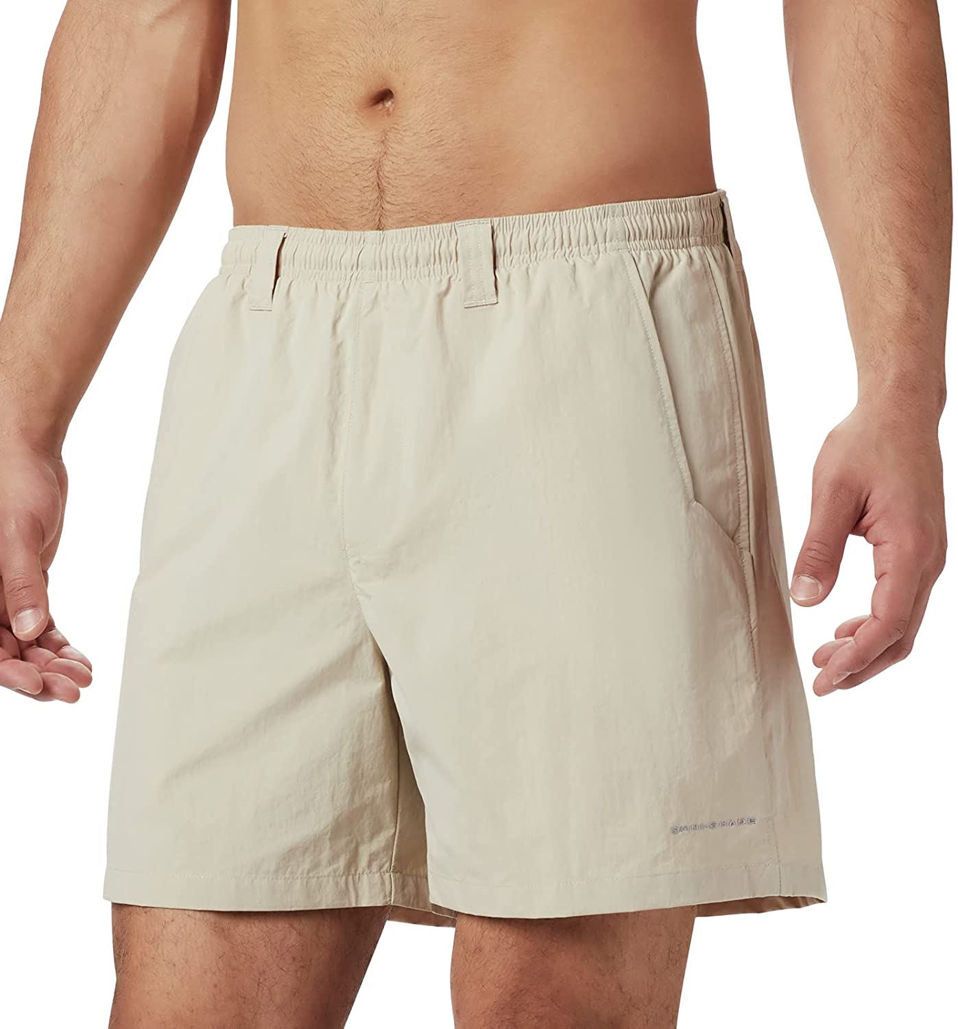 Columbia Men's Size Chart With quick-dry performance and easy, throw-on fit, the Backcast III™ Water Short transitions from swim trunk to fishing piece whenever the mood strikes you. The Performance Fishing Gear™ (PFG) collection is specifically designed for mobility and protection with the angler in mind. Nylon poplin:• Lightweight, textured nylon weave offers quick-dry performance.• Omni-Shade™ UPF 50 fabrication protects your skin during outdoor activity by blocking harmful Ultraviolet A and Ultraviolet B rays (UVA and UVB). Elastic, belt-loop waistband with inner drawstring. Slash hand pockets. Back zip pocket. Mesh brief lining. PFG patches set at the back. 100% nylon;Lining: 100% polyester. Machine wash and tumble dry. Imported. Measurements: Waist Measurement: 32 in Outseam: 18 in Inseam: 8 in Front Rise: 12 in Back Rise: 17 in Leg Opening: 28 in Product measurements were taken using size MD, inseam 8. Please note that measurements may vary by size. If you're not fully satisfied with your purchase, you are welcome to return any unworn and unwashed items with tags intact and original packaging included.