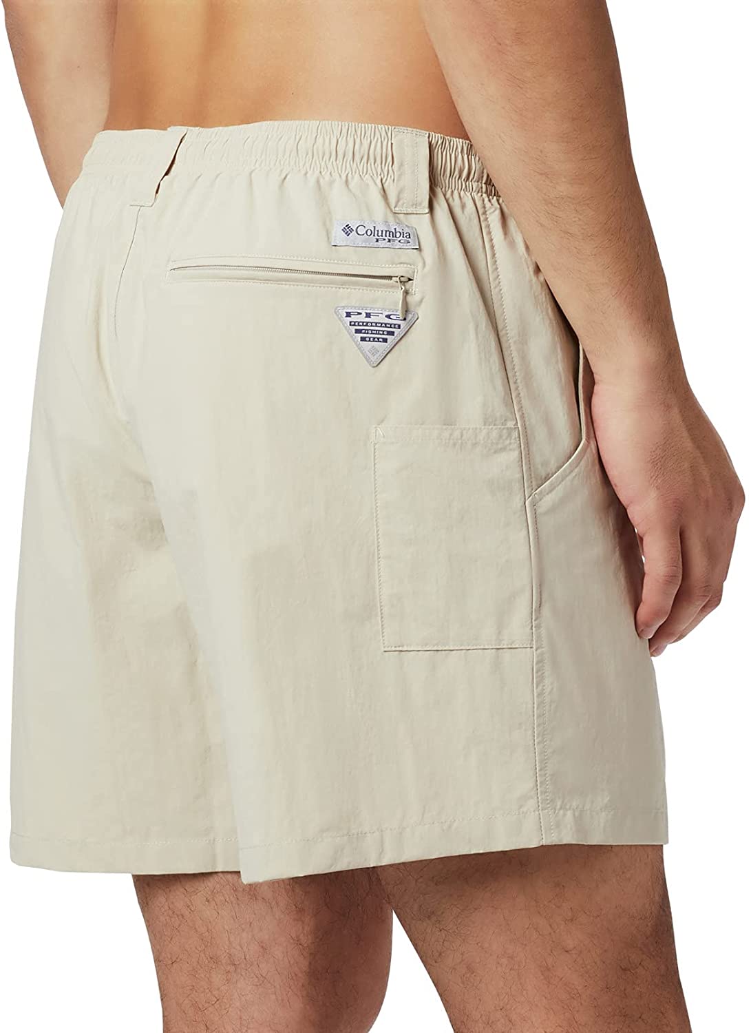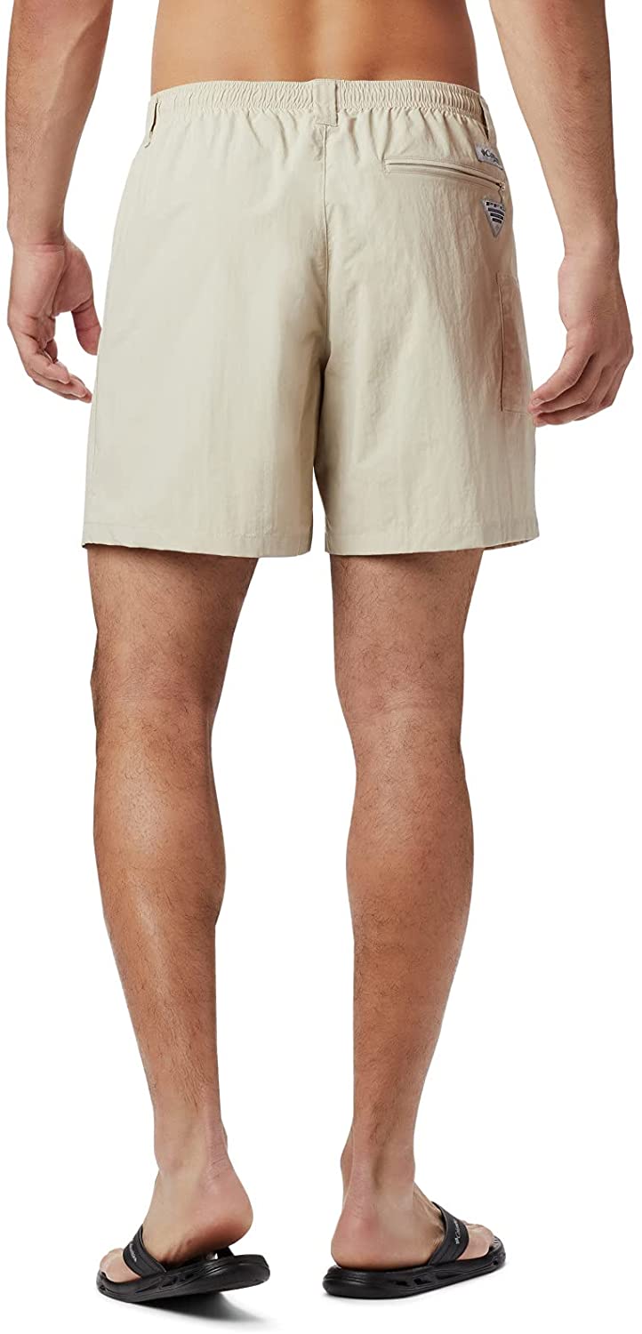 Columbia Men's Size Chart With quick-dry performance and easy, throw-on fit, the Backcast III™ Water Short transitions from swim trunk to fishing piece whenever the mood strikes you. The Performance Fishing Gear™ (PFG) collection is specifically designed for mobility and protection with the angler in mind. Nylon poplin:• Lightweight, textured nylon weave offers quick-dry performance.• Omni-Shade™ UPF 50 fabrication protects your skin during outdoor activity by blocking harmful Ultraviolet A and Ultraviolet B rays (UVA and UVB). Elastic, belt-loop waistband with inner drawstring. Slash hand pockets. Back zip pocket. Mesh brief lining. PFG patches set at the back. 100% nylon;Lining: 100% polyester. Machine wash and tumble dry. Imported. Measurements: Waist Measurement: 32 in Outseam: 18 in Inseam: 8 in Front Rise: 12 in Back Rise: 17 in Leg Opening: 28 in Product measurements were taken using size MD, inseam 8. Please note that measurements may vary by size. If you're not fully satisfied with your purchase, you are welcome to return any unworn and unwashed items with tags intact and original packaging included.
