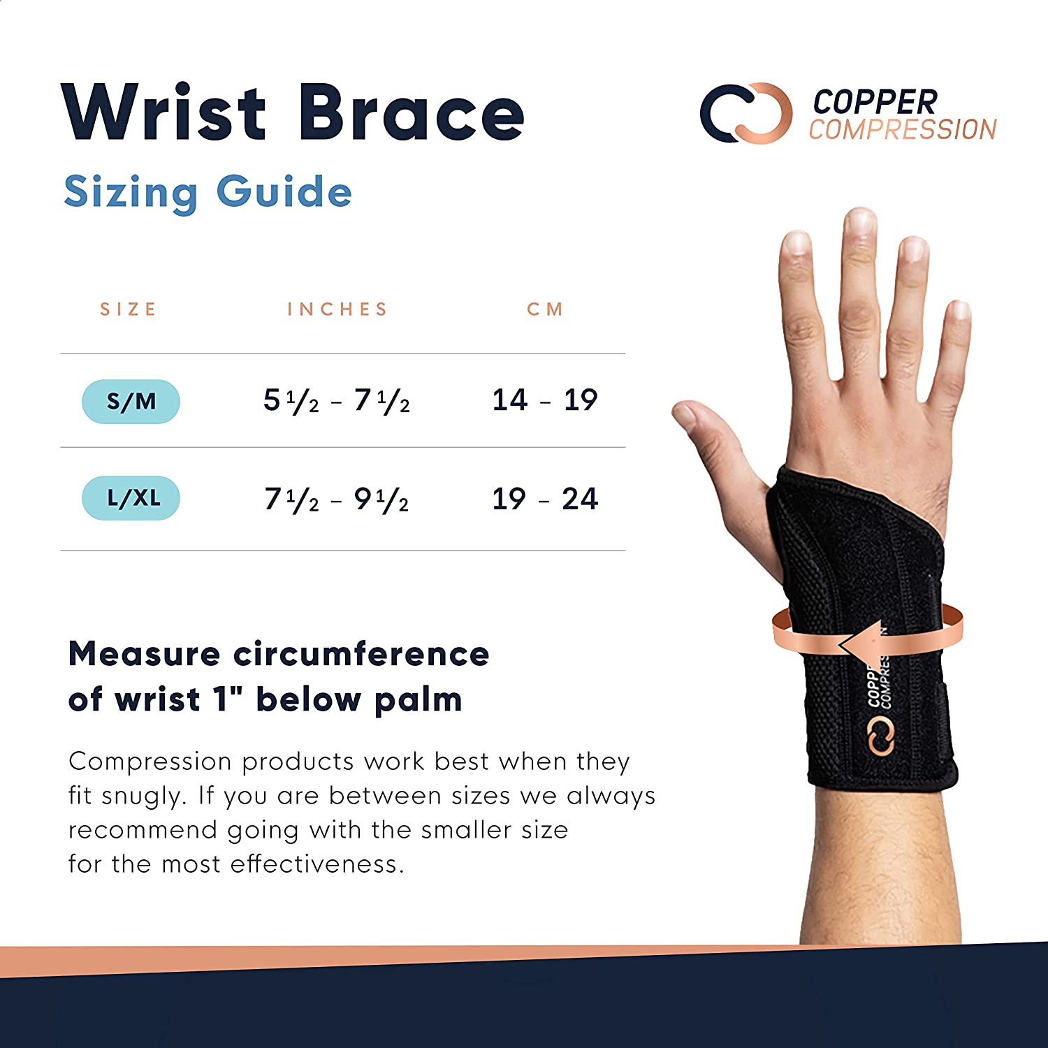 Copper Compression Recovery Wrist Brace - Copper Infused Adjustable Support Splint for Pain, Carpal Tunnel, Arthritis, Tendonitis, RSI, Sprain. Night Day Splint for Men Women - Fits Right Hand S-M