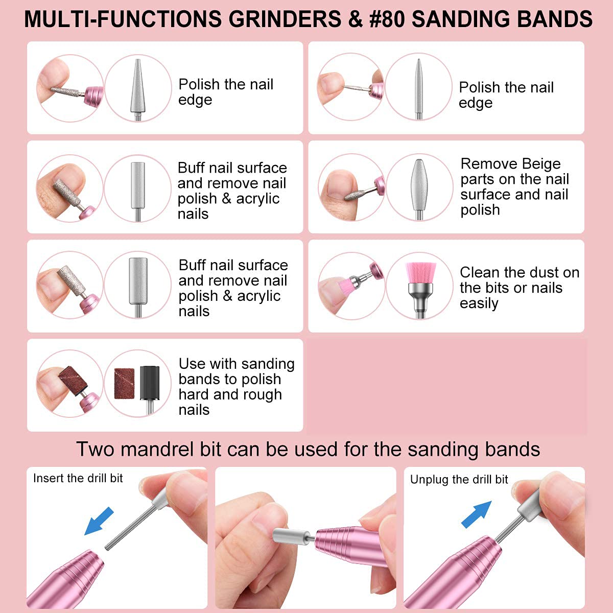 COSITTE Electric Nail Drill,USB Electric Nail Drill Machine for Acrylic Nails,Portable Electrical Nail File Polishing Tool Manicure Pedicure Efile Nail Supplies for Home and Salon Use,Pink