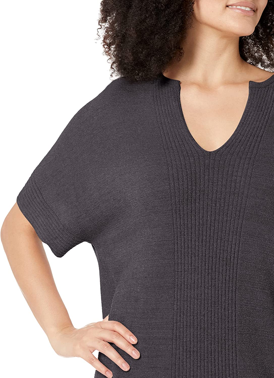 Walk the sands of your favorite beach and go straight to dinner in our ultra lite caftan. beautiful ribbed detailing on the front, back and hem. flattering deep v neckline and dolman style half sleeves.