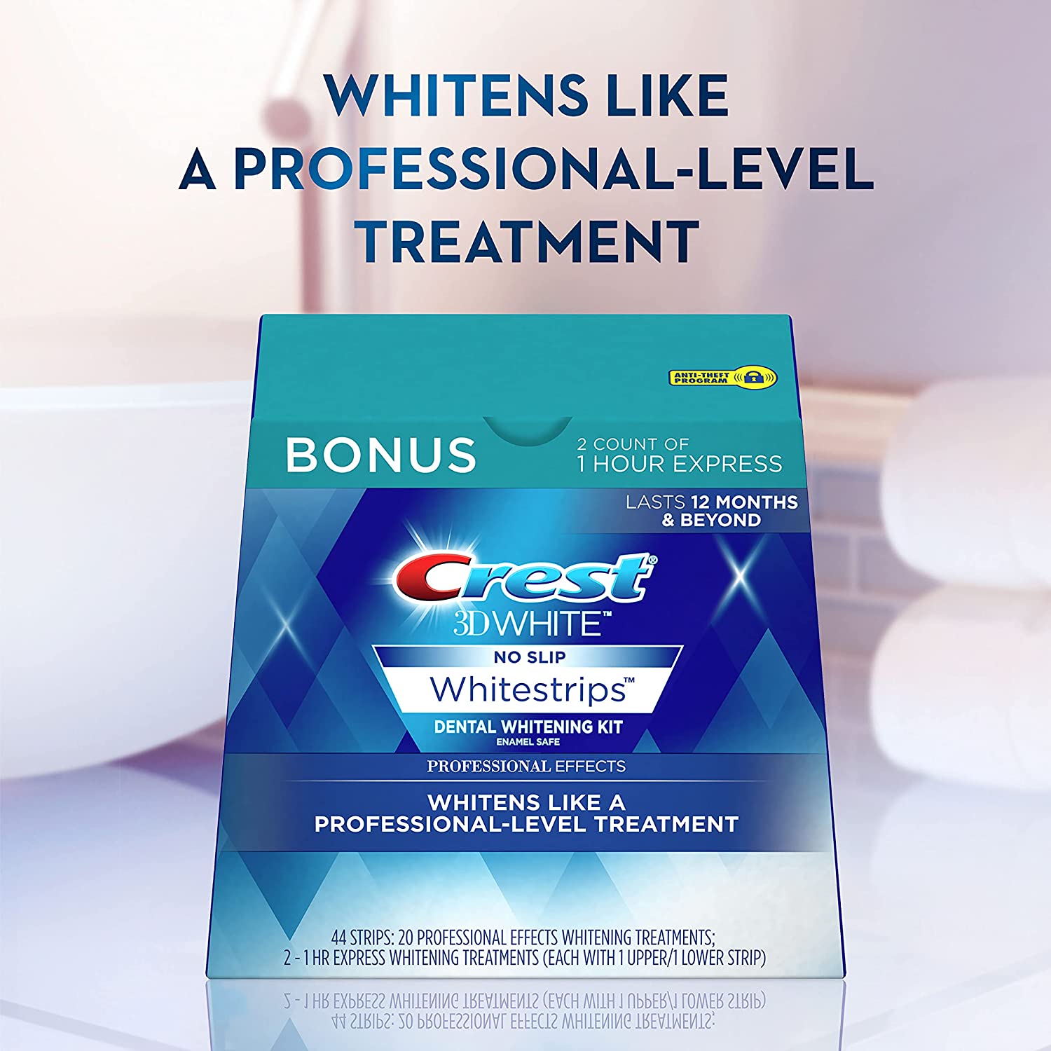 Reveal a brilliantly whiter smile. Crest 3D White Luxe Whitestrips Professional Effects are like an eraser for your teeth. Remove the stains from the last 14 years in just 30 minutes a day. Their no slip grip means the strips stay put until you take them off, allowing you to talk and even drink water while whitening your teeth. You’ll see a whiter smile after 3 days, and full results in 20 days. Achieve professional-level teeth whitening results without the professional price tag. And when you need some last-minute teeth whitening, 2 treatments of Crest 3D White Whitestrips 1 Hour Express are included so you can experience a whiter smile in just 1 hour for an unexpected event. Please note: Crest Whitestrips must be manually applied and there is room for application error. If not applied correctly, the whitestrips may slip or not adhere properly. Crest Whitestrips products were notably improved in 2009 to a “dryer” more concentrated formula. Some consumers may be expecting a less concentrated formula and could perceive the formula as “dryer”