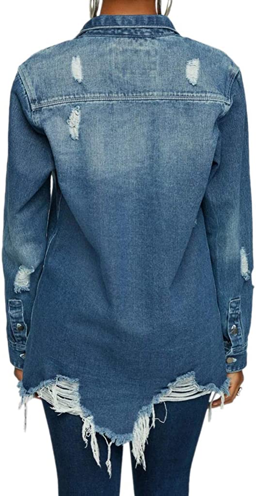 Denim Jacket for Women Winter Long Sleeve Classic Distressed Butterfly Jean Trucker Jackets