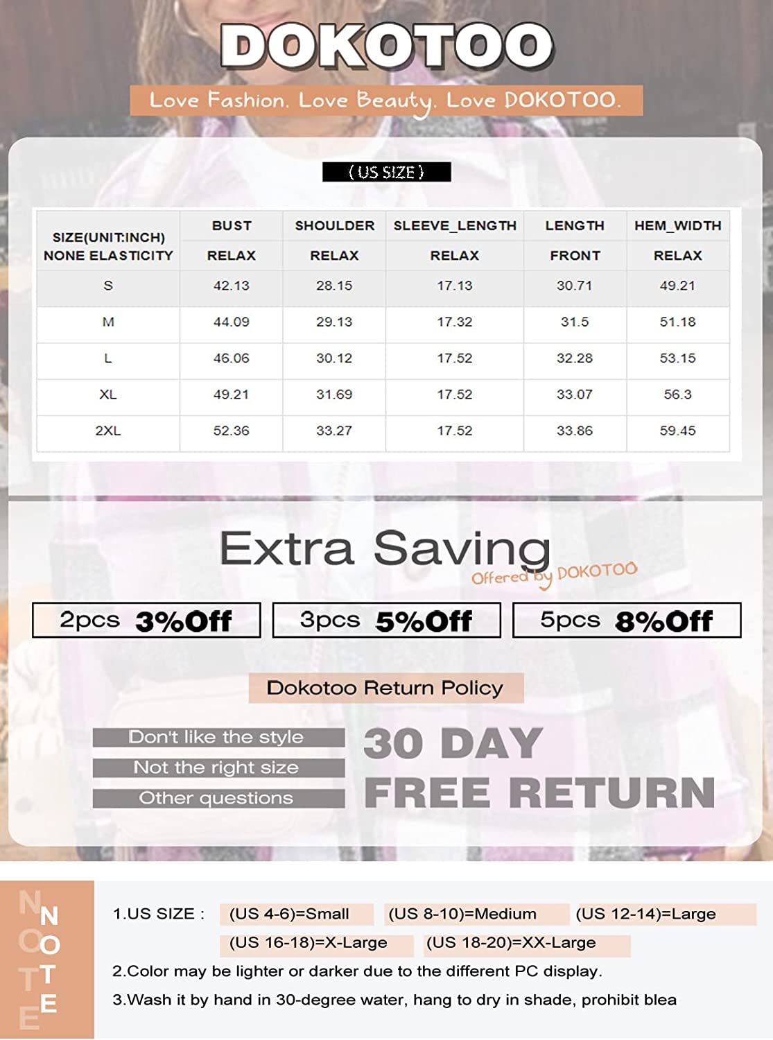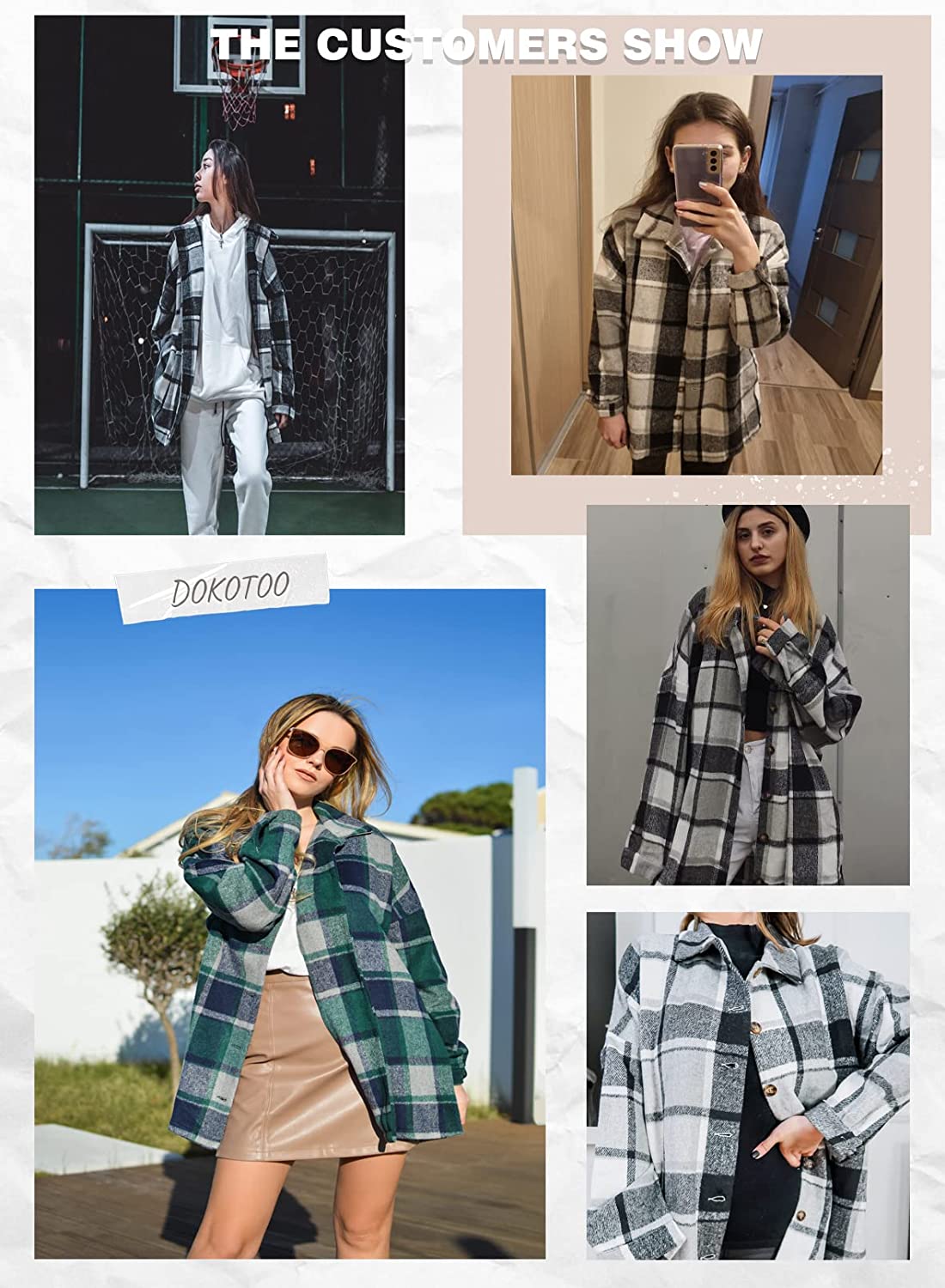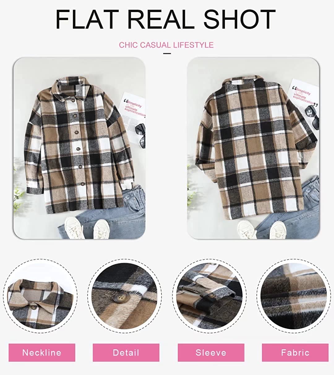 Dokotoo Women's 2021 Fashion Plaid Button Down Lapel Collar Shacket Jacket Coat Outerwear