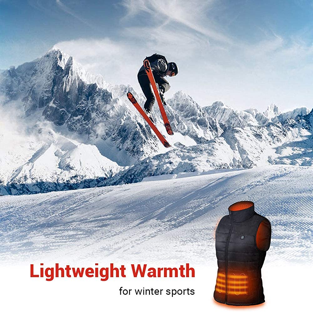 For a combination of functional comfort and quilted design, reach for the Sleeveless Quilted Heated Vest from Dr. Prepare, this unisex heated vest helps you stay cozy and warm. Operation: ※ Please use a portable battery pack (not included) with 2A or 2.4A USB output to power up this heated vest. ※ Step 1. Unzip the inner pocket and take out the USB cable. Step 2. Insert the USB cable into the USB output on the battery. Then push the Power Button on your battery pack to turn it on. The thermal switch on the vest (near your chest) now cycles through red, blue, and green light for once, indicating the heated vest is plugged in. Step 3. Long press the thermal switch for 2 seconds and it will flash red light. The heated vest will enter the AUTO Mode. In AUTO Mode, the temperature of your heated vest will regulate from High to Medium after the red light flashes for 5 minutes. Step 4. If you prefer a certain heating level to the AUTO mode, short press the thermal switch. Then you can adjust temperature settings from High, Medium to Low. The red light stands for high heat. The blue light indicates medium heat and the green light signals low heat. Step 5. Press and hold the thermal switch for 2 seconds to stop the heated vest from heating. Specifications: Name: Heated Vest Input: 5V / 1.9A Rated Wattage: 9.5W Outer Shell: 100% Polyester Filling: 100% Polyester Three Heating Levels: 131°F (High, Red Light), 122°F (Medium, Blue Light) 113°F (Low, Green Light)
