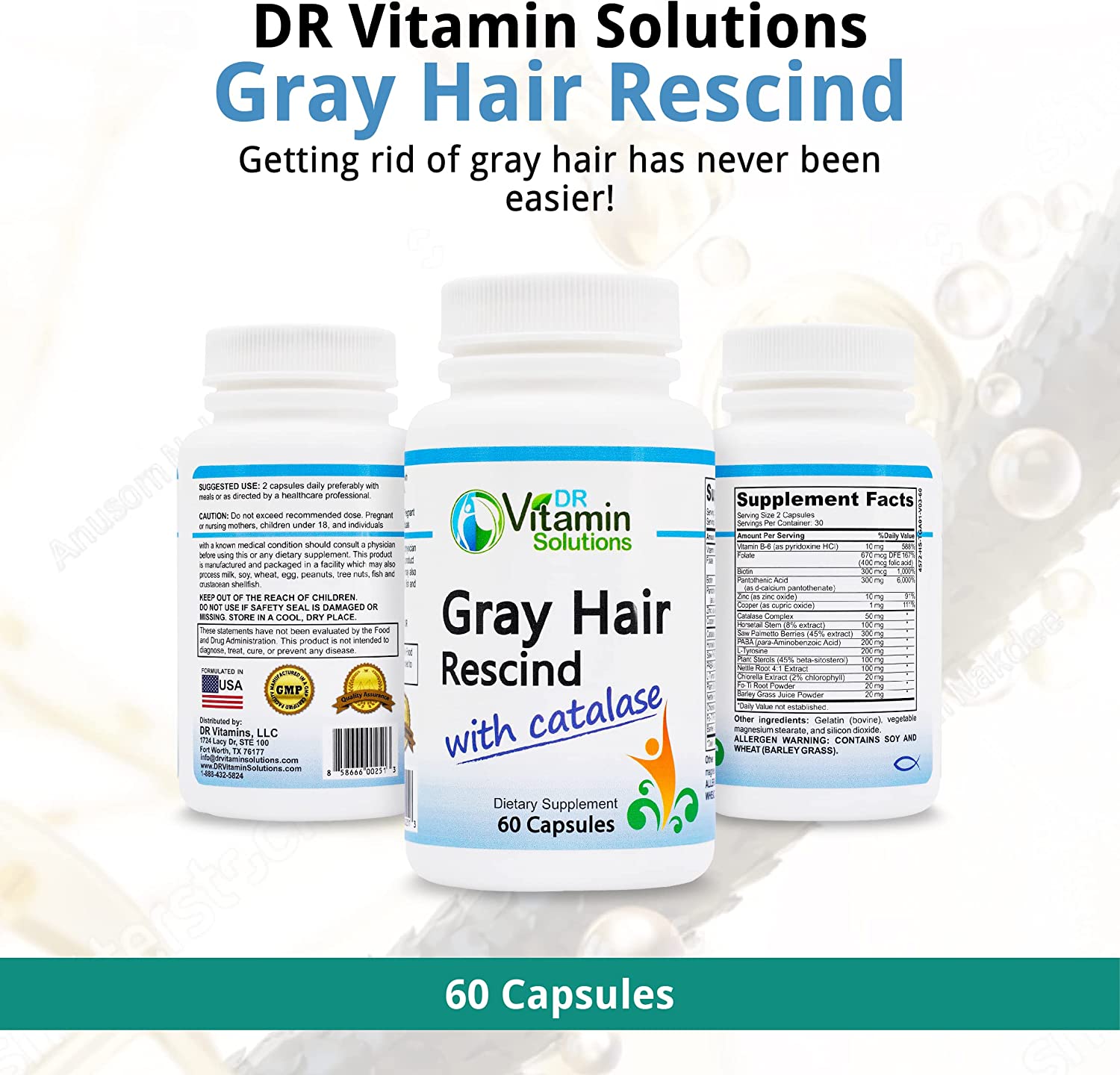DR Vitamin Solutions Gray Hair Rescind Anti-Gray Hair Supplements for Men and Women (60 Capsules) Restores Natural Hair Color and Reverses Gray Hair at The Root