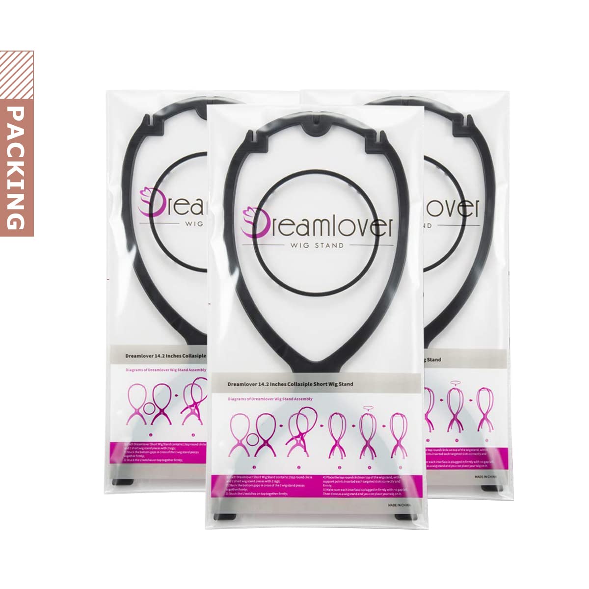Dreamlover Wig Stand for Wigs, Portable Wig Head Stand for Women, 3 Pack
