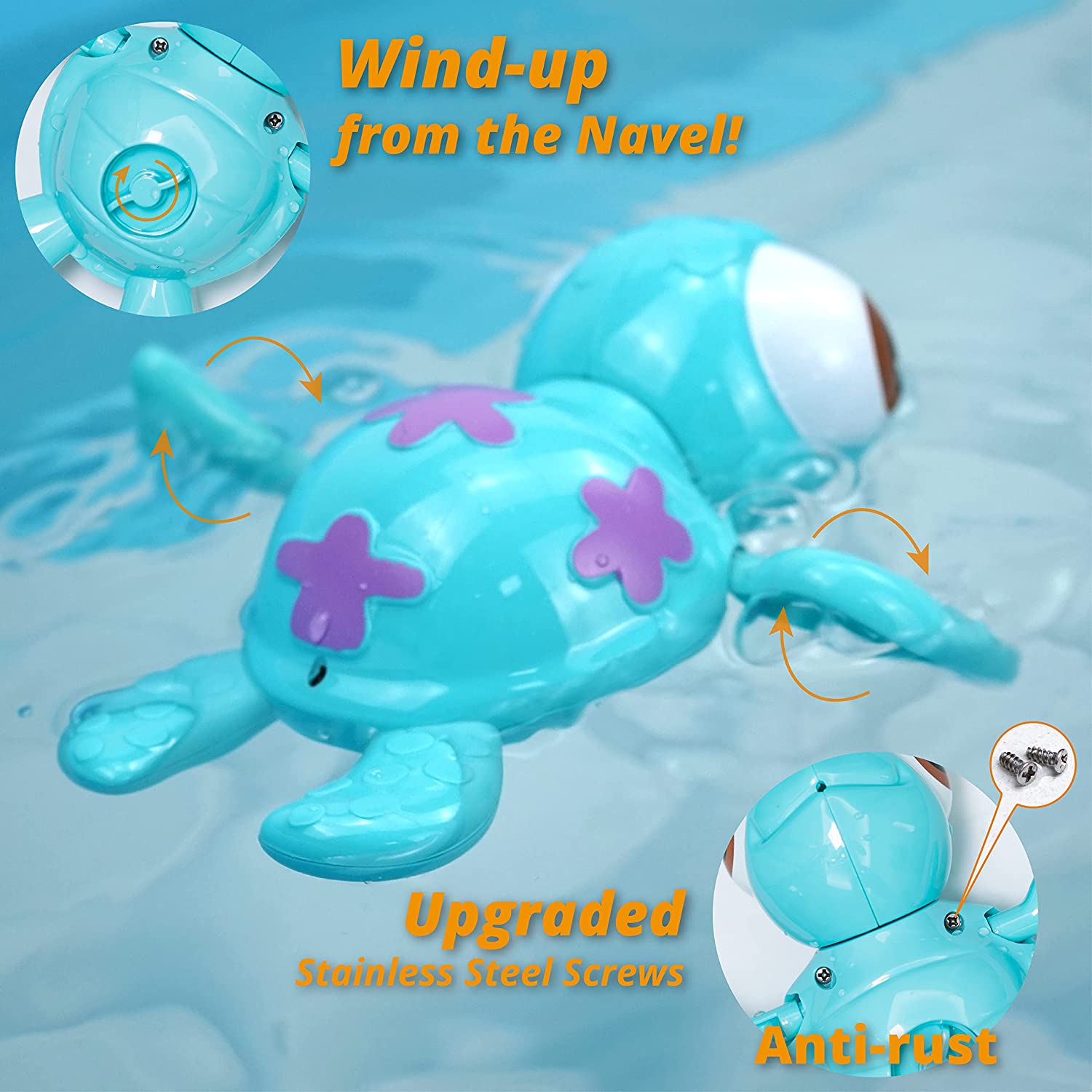 DUCKBOXX XX Bath Toys Wind up Swimming Sea Turtles for Toddlers, Babies (Blue)