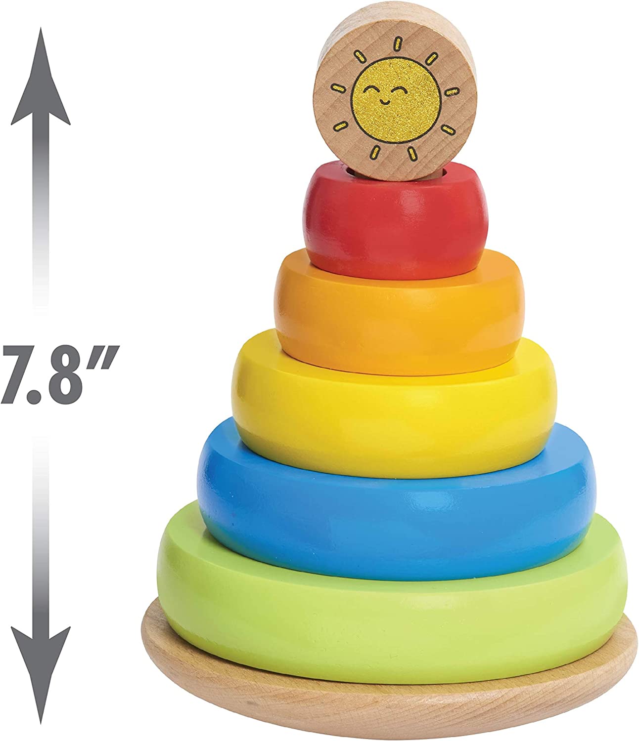 The traditional Wooden Stacking Ring set has been given a wobbly twist to make it even more fun! Stack the five brightly colored, chunky, wooden, stacking rings onto the base as it wobbles about then top it off with the sun topper. This classic wooden toy will encourage children to problem solve and enhances fine motor skills, including boosting reaction time and balance. Count the colorful rings with your child as they stack them on the base and place the little sun on top, then give the toy a push to watch it weeble and wobble around. Ages 18 - 36 months Early Learning Centre is based in the United Kingdom and has been designing and developing high quality, innovative toys since we were established in 1974. We are proud of our heritage and, as a leading specialist of children’s development, we promise to always strive to be that little bit better, and that little bit different.