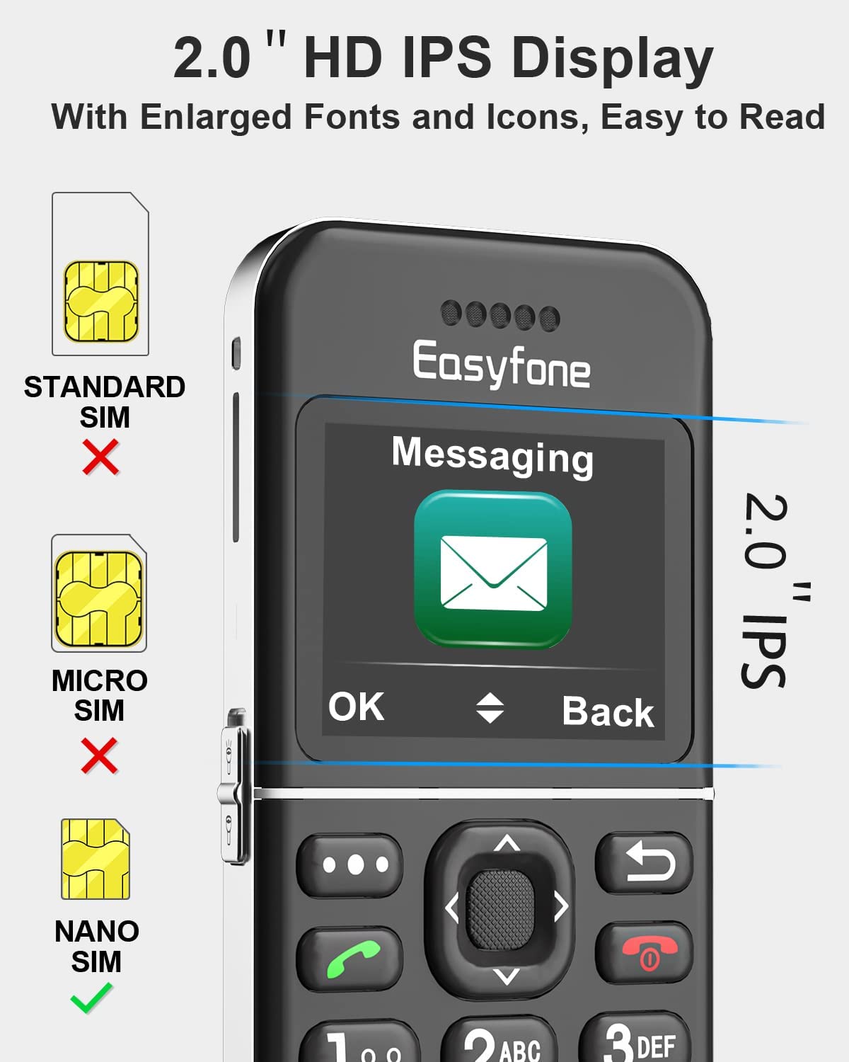Easyfone T100 4G LTE Unlocked Big Button Senior Cell Phone, SOS Button with GPS, Hearing Aid Compatible, 1500mAh Battery with Easy to Use Charging Cradle, FCC Certified.
