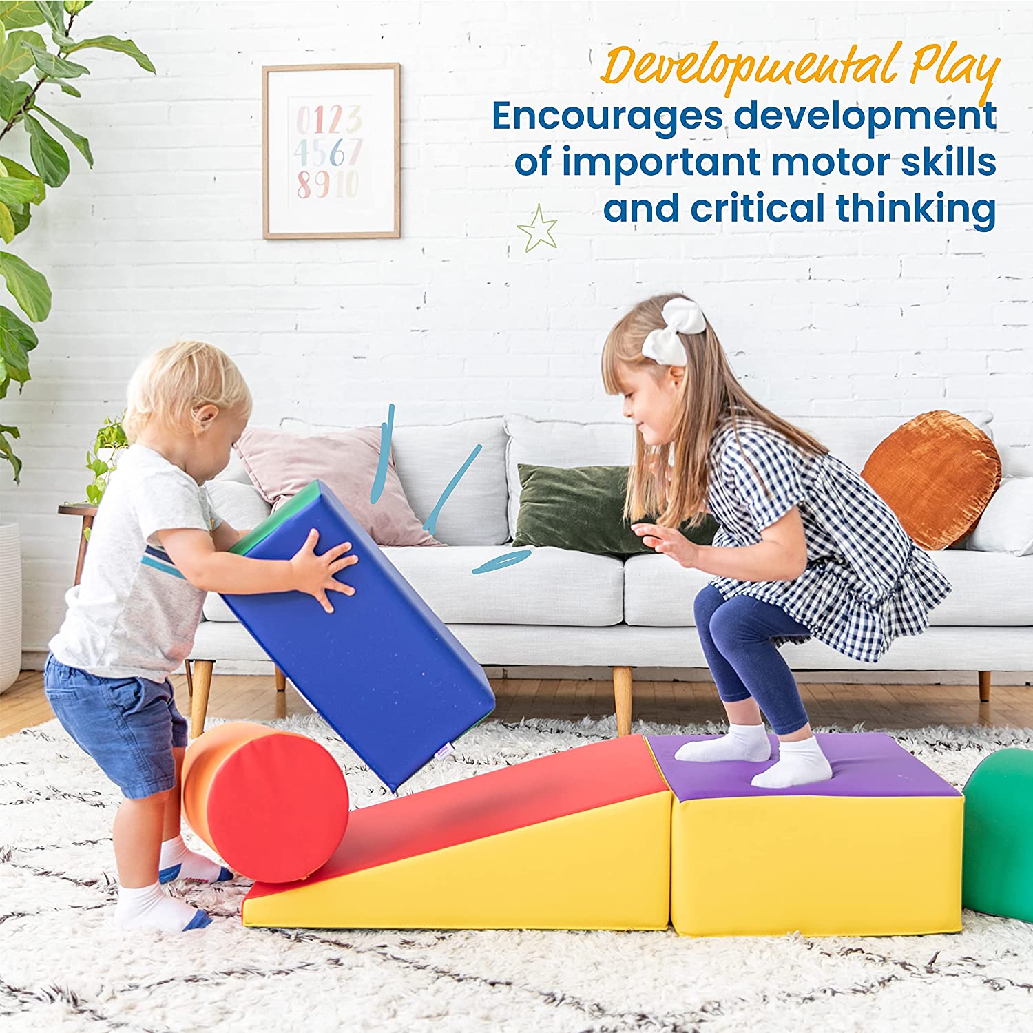 The SoftZone Climb and Crawl Play Set allows little ones to develop important gross motor skills as they move and play at home, at daycare, or in the classroom. This 5-piece set includes square, rectangle, wedge, round, and half-moon shape to allow for a variety of setup options and keep playtime open-ended and fresh. Covered in soft vegan leather, pieces are easy to clean by wiping down with a mild soap-and-water solution or your favorite bleach-free cleaning wipe. Rated GREENGUARD [GOLD] for low VOCs, CPSIA lead and phthalate compliant, meets ASTM F963 Toy Safety Standards and adheres to CA-117 requirements for fire retardancy. Constructed with certified flexible polyurethane foams that meet CertiPUR-US program standards. At ECR4Kids, we’re committed to safety, testing and regulatory compliance to ensure our products meet or exceed industry standards. You and your kids deserve the absolute best for a brighter way to play, share, learn and grow.