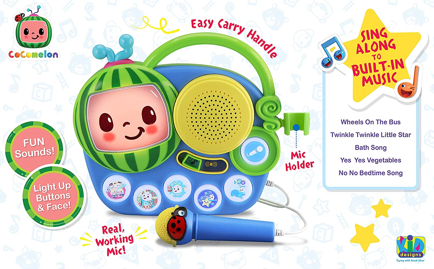 eKids Cocomelon Toy Singalong Boombox with Microphone for Toddlers, Built-in Music and Flashing Lights, for Fans of Cocomelon Toys and Gifts