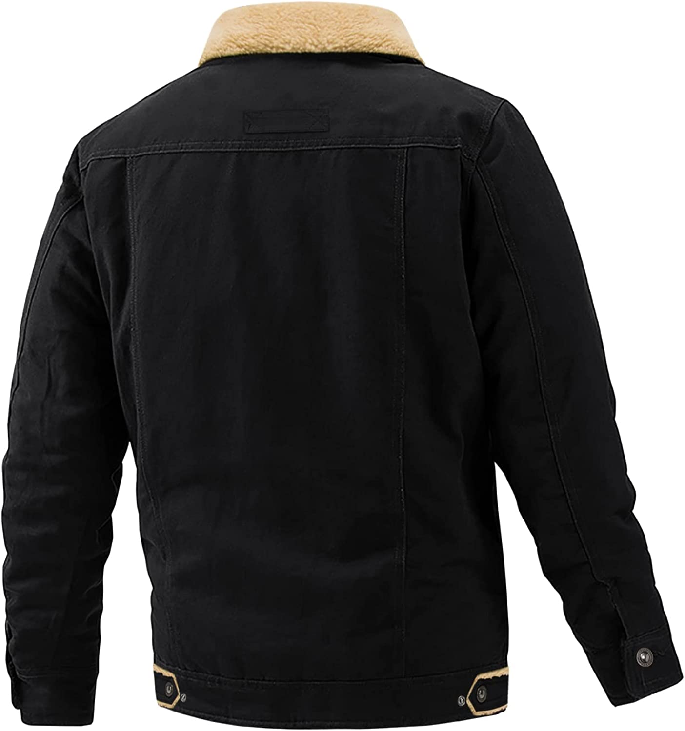 EKLENTSON Jackets for Men Thick Thermal Winter Fleece Lined Lapel Cargo Jackets