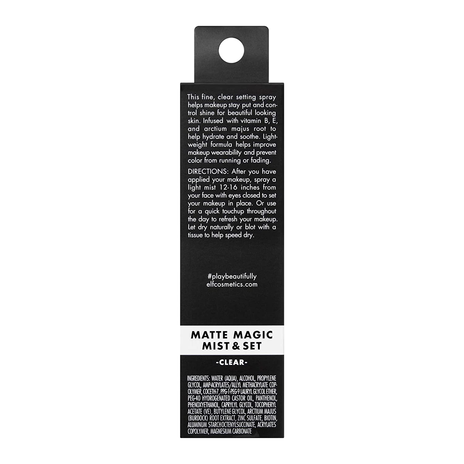 The Matte Magic Mist & Set is your secret weapon to a flawless face. When applied after to your makeup, this shine-controlling, fine mist will lock in your look; all-day retouches and constant compact checks will become a thing of the past with this finishing spray. e.l.f. makes the best of beauty accessible to every eye, lip, and face. Your originality is infinite, and we are inspired by what makes you unique. From the early explorer to the trend-obsessed beauty junkie—glam or bare faced, minimalist, maximalist and every look in between—we are for every eye, lip, and face. Proud to be 100% vegan and cruelty-free, worldwide.
