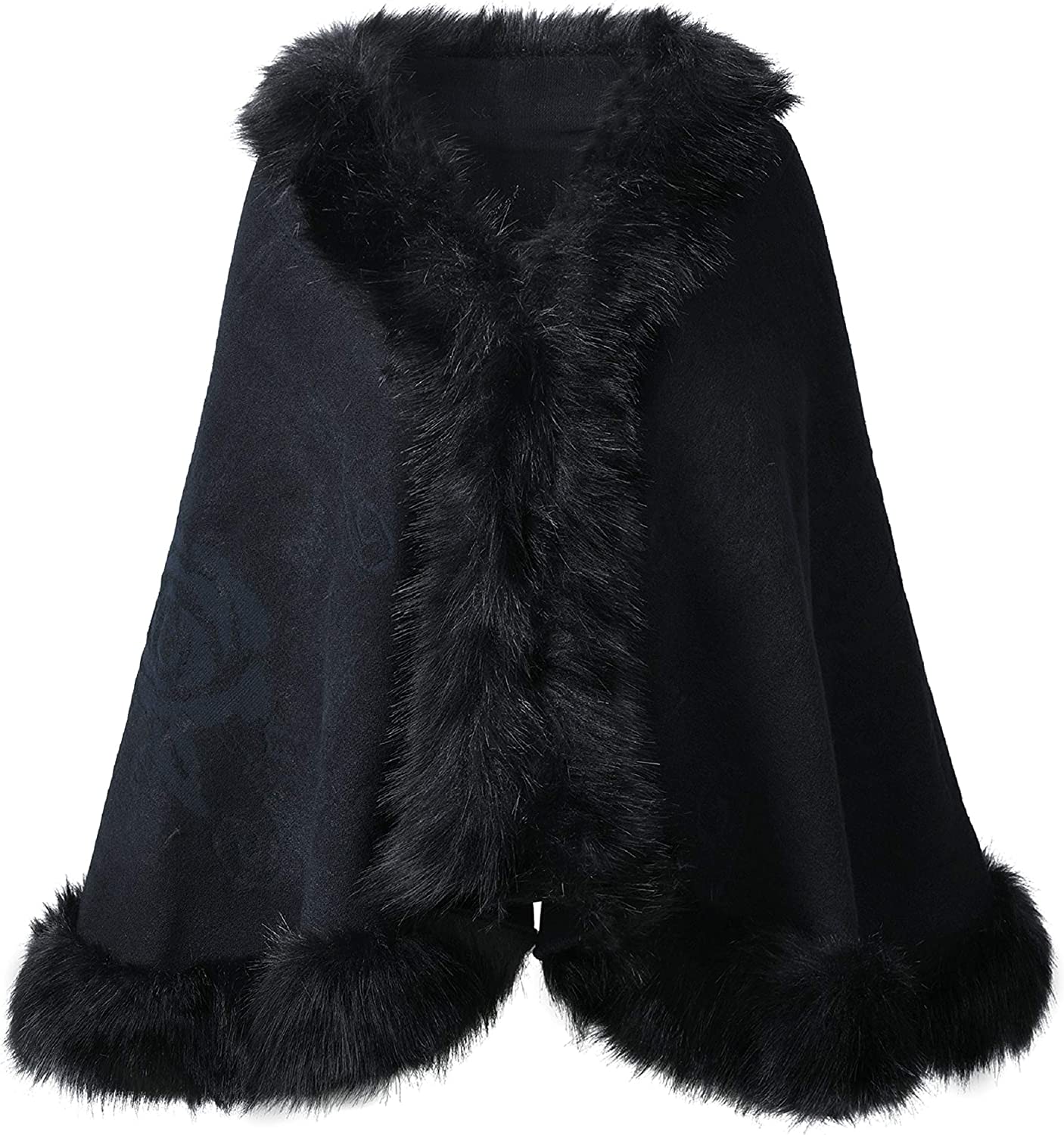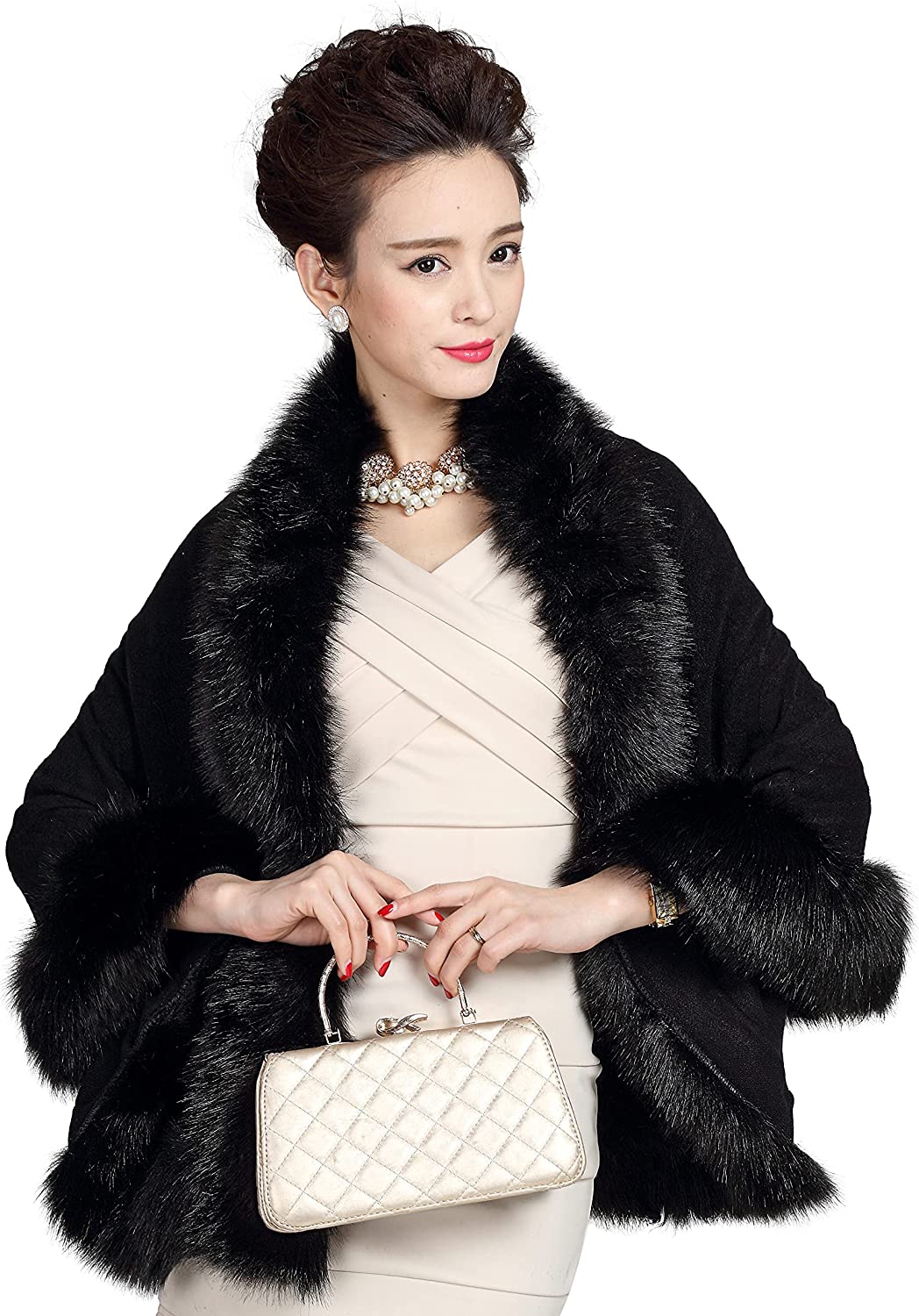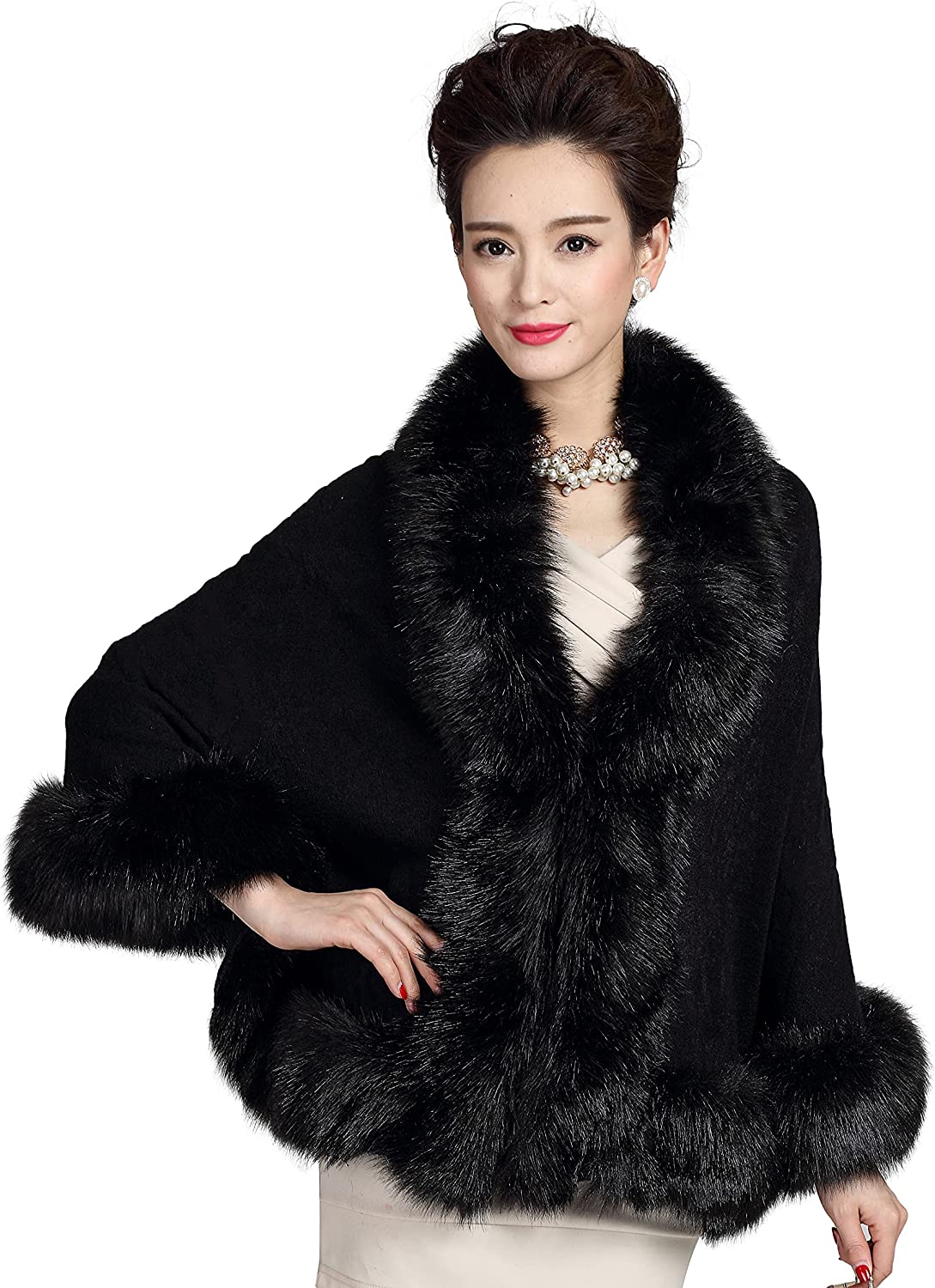 Elfjoy Luxury Bridal Faux Fur Cashmere Wool Shawl Cloak Cape Wedding Dress Party Coat for Winter