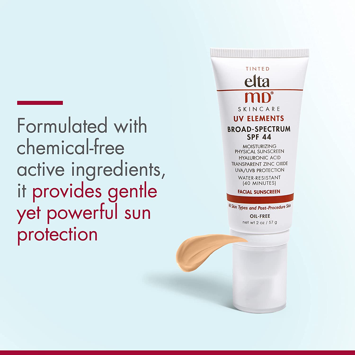 EltaMD UV Elements SPF 44 Tinted Moisturizer for Face with SPF, Tinted Mineral Sunscreen Moisturizer for Dry Skin, Hydrates Dry Skin, Oil Free Face Moisturizer, Dermatologist Recommended, 2.0 oz Tube