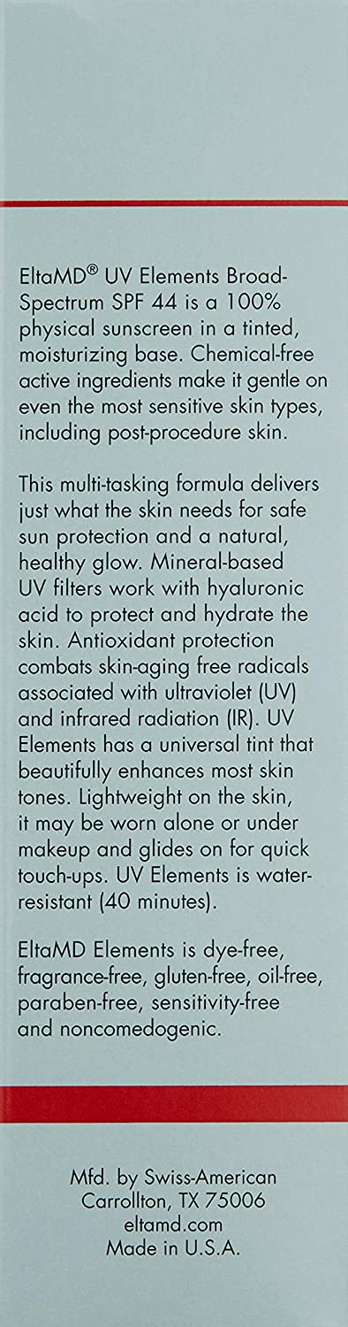 EltaMD UV Elements SPF 44 Tinted Moisturizer for Face with SPF, Tinted Mineral Sunscreen Moisturizer for Dry Skin, Hydrates Dry Skin, Oil Free Face Moisturizer, Dermatologist Recommended, 2.0 oz Tube