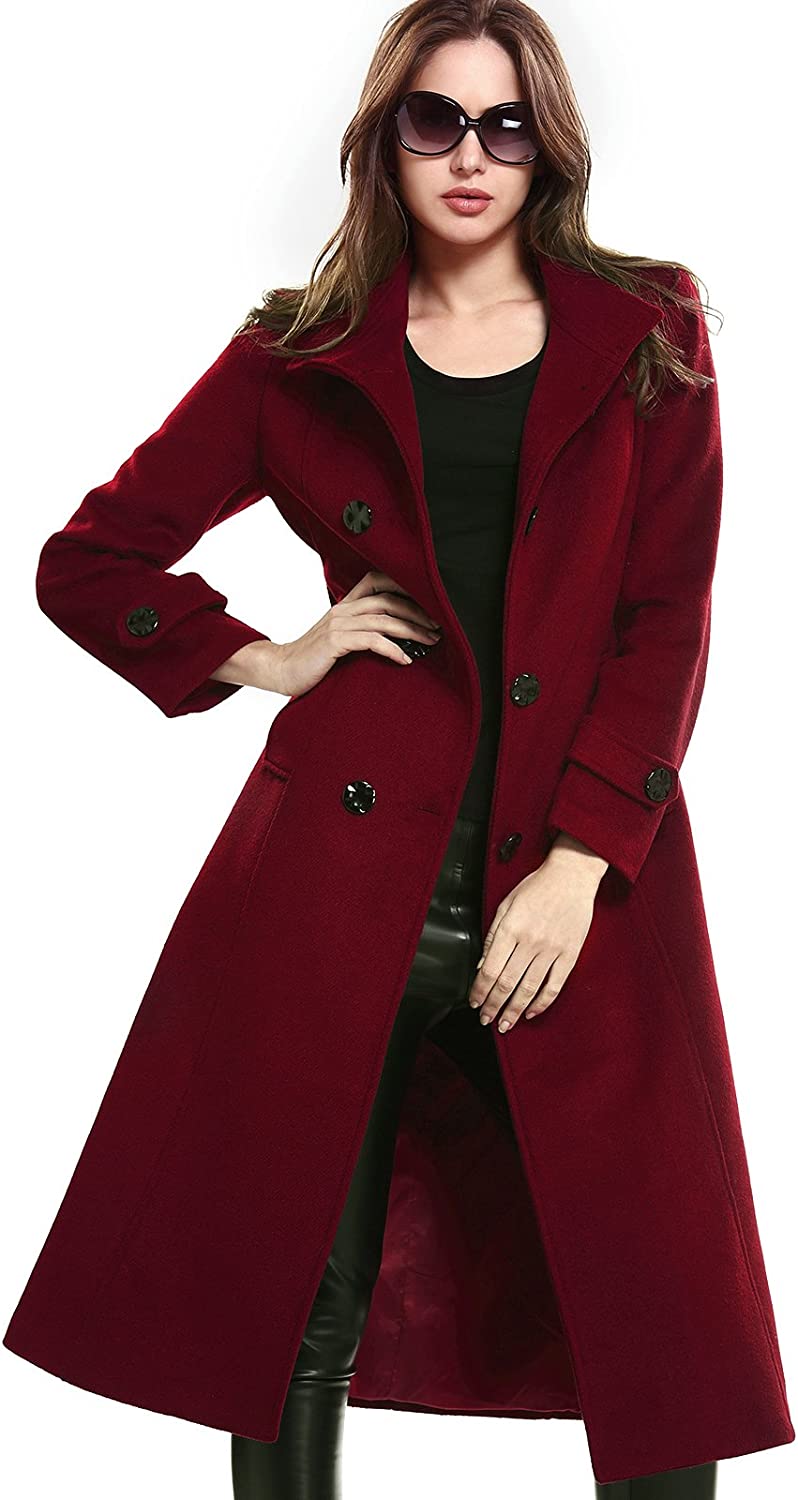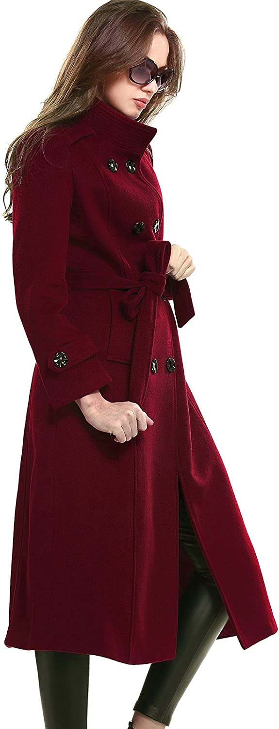 Escalier Women's Wool Trench Coat Winter Double-Breasted Jacket with Belts