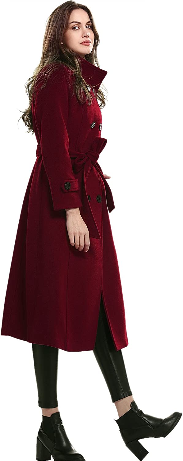 Escalier Women's Wool Trench Coat Winter Double-Breasted Jacket with Belts