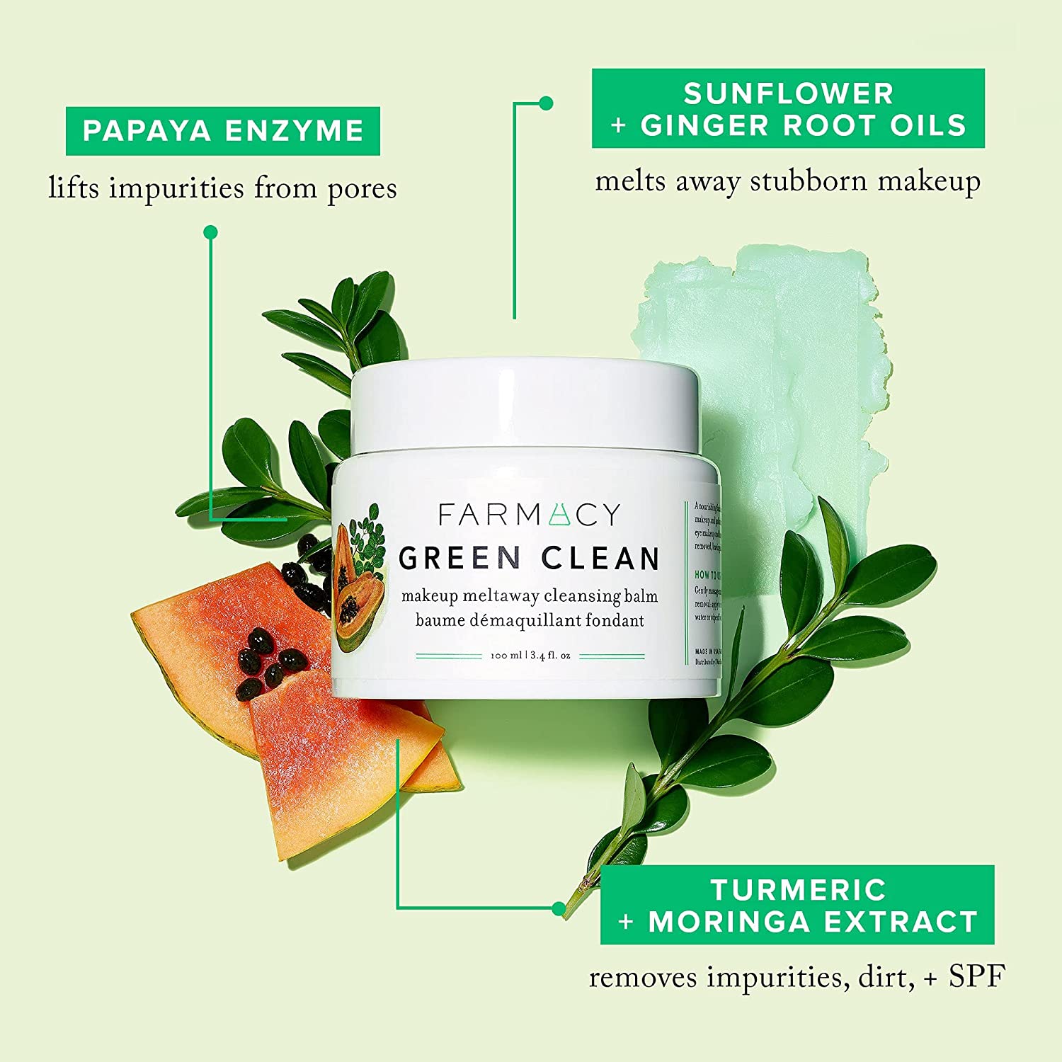 Farmacy Natural Makeup Remover - Green Clean Makeup Meltaway Cleansing Balm Cosmetic, 100ml