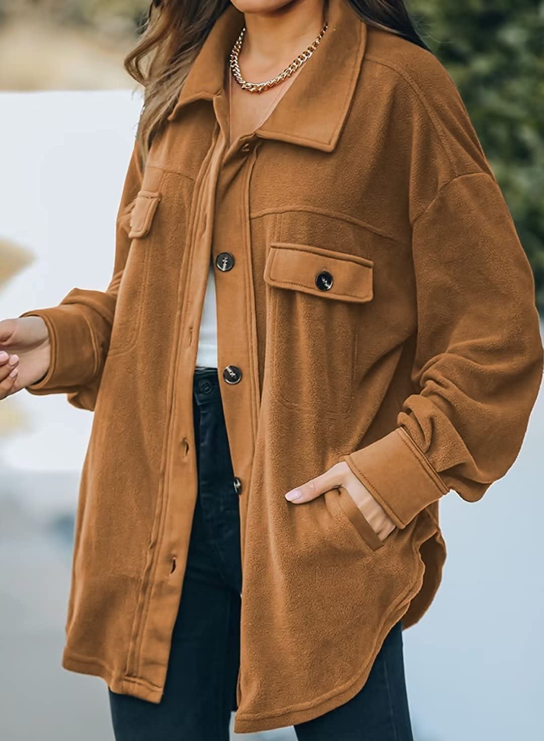 FARYSAYS Womens Button Down Shirts Shacket Jackets Mid Length Trench Pea Coat